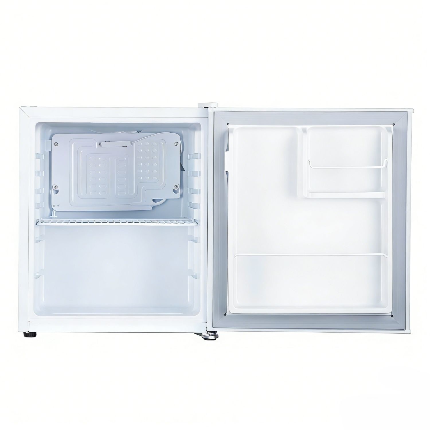 Inside, the fridge offers a 48L capacity with a practical shelf for organising drinks and snacks. The reversible door allows flexible placement, while the quiet 39dB operation means it won't disturb you whether it's in a kitchen, office or bedroom.