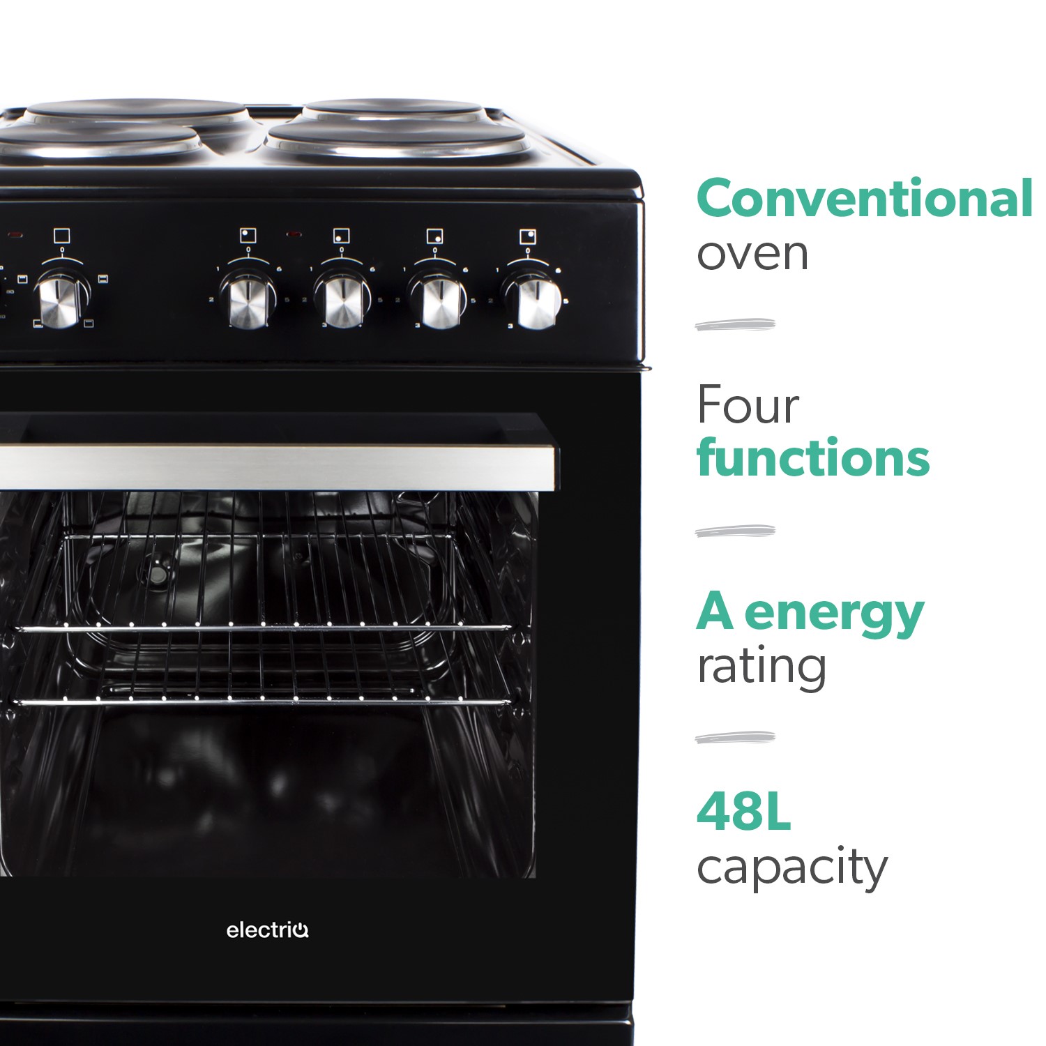 This electriQ single cooker is a practical and durable addition to any kitchen. It features a 48L electric oven and a 4-zone sealed plate hob, offering plenty of space for everyday meals—perfect for smaller families and couples.