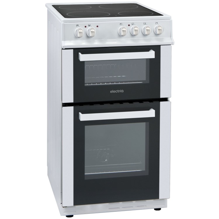 Increase your cooking capabilities with the 50cm wide twin cavity cooker from electriQ. With a modern and convenient ceramic hob, a fan main oven and a separate cavity grill with an included grill pan handle set, you'll be able to cook, simmer, fry and grill all at the same timer with this freestanding cooker.