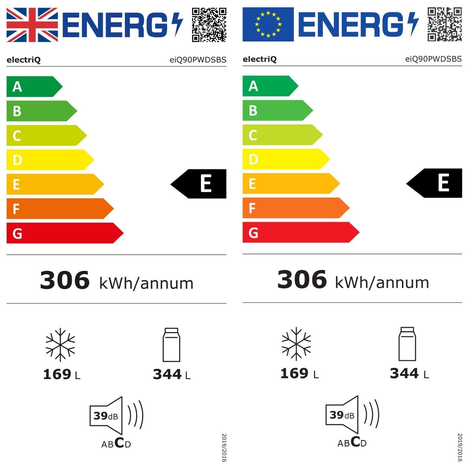 This freestanding American-style fridge freezer from electriQ is built for the demands of busy family kitchens. Finished in sleek stainless steel, it offers a spacious side-by-side layout with a total capacity of 513L. The Total No Frost design means you'll never have to manually defrost again, while Fast Cool and Fast Freeze functions quickly lock in freshness for your groceries.