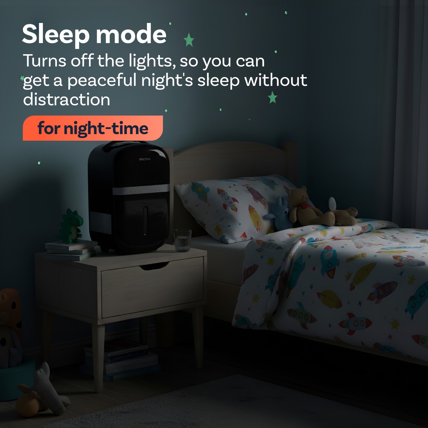- Sleep mode: perfect for using at night when sleeping - turns the lights off