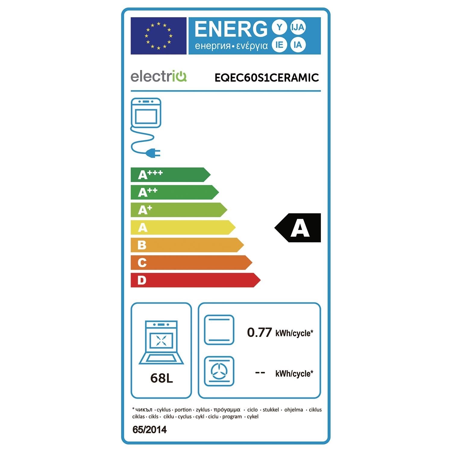 electriQ 60cm EQEC60S1CERAMIC Electric Cooker with Ceramic Hob