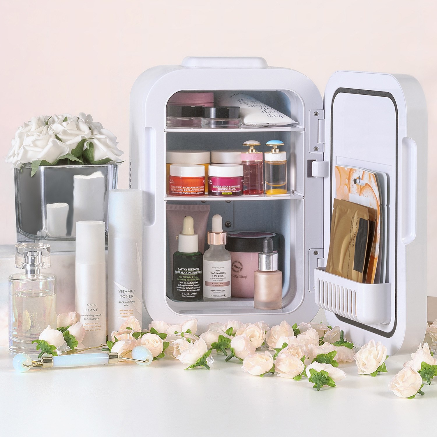- Keeping skincare chilled improves its performance and prevents bacterial growth