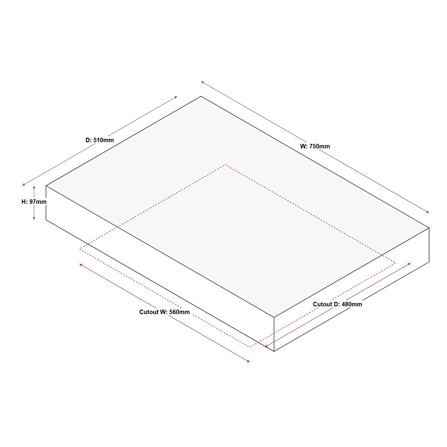 - Dimensions: H 97 x W 750 x D 510mm