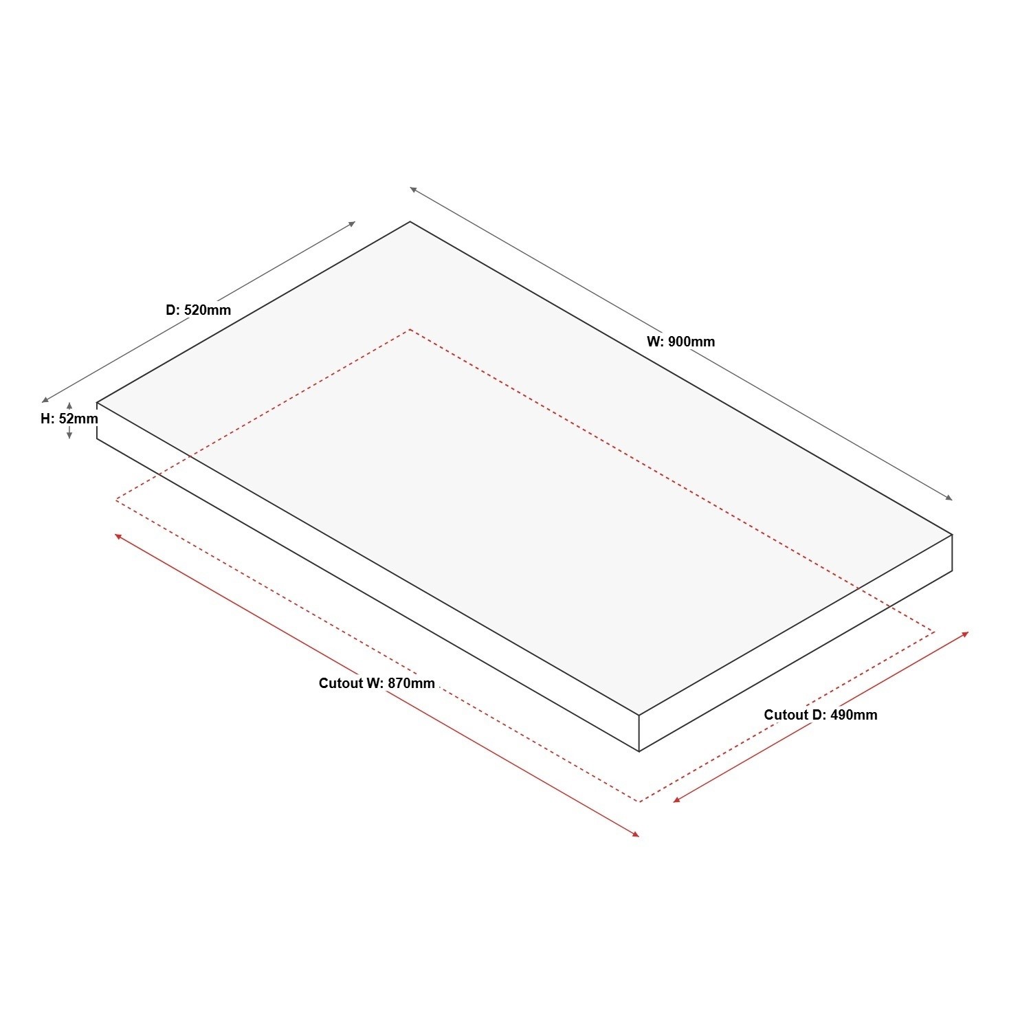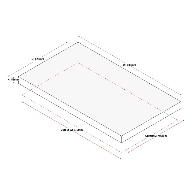 - Cut out dimensions: W 870mm x D 490mm