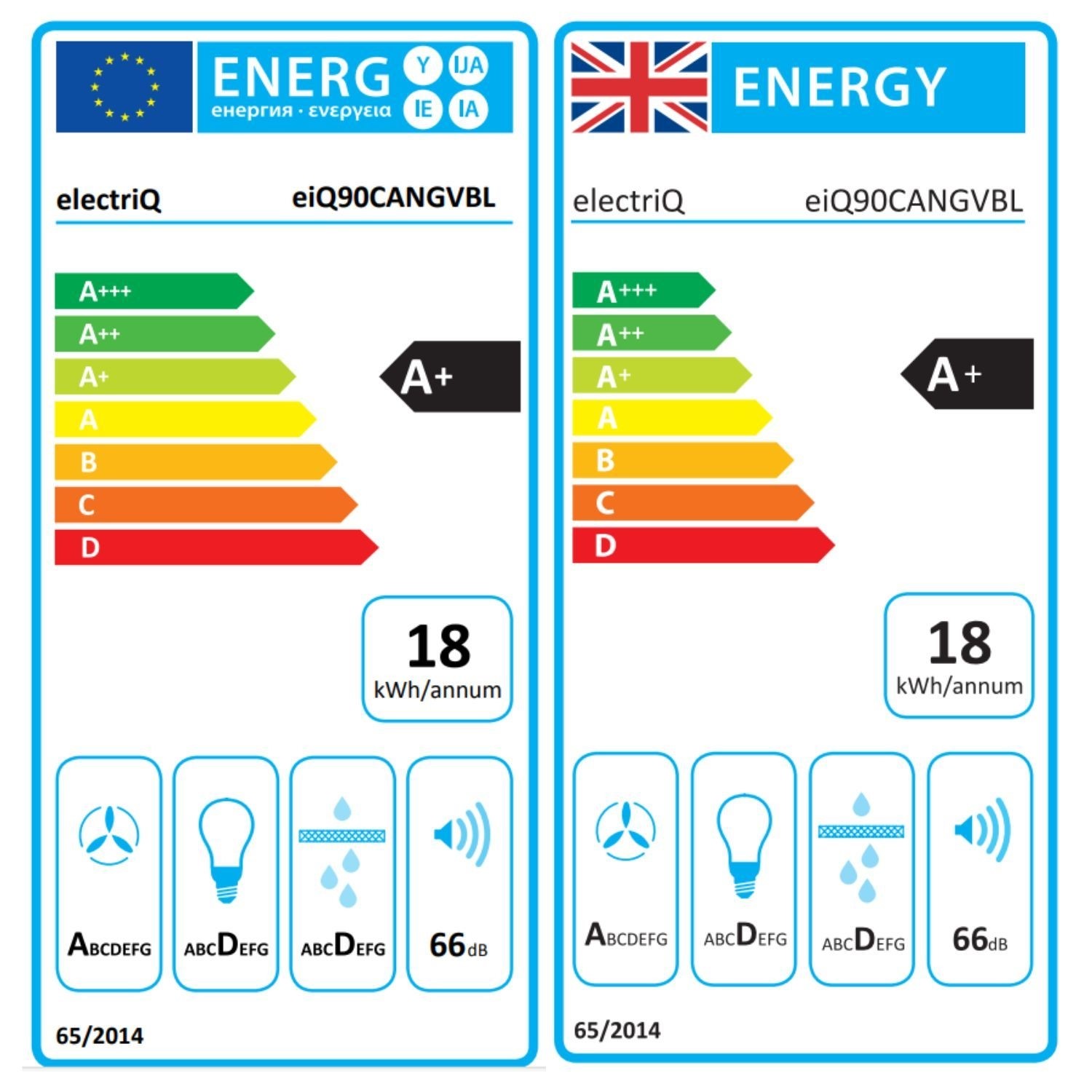 - Grease Filter: eiQGF90CANB included (dishwasher-safe at 60°C)
