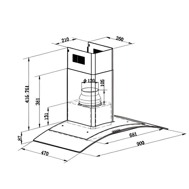 - Air outlet: Extendable 150mm with 120/150mm adapter