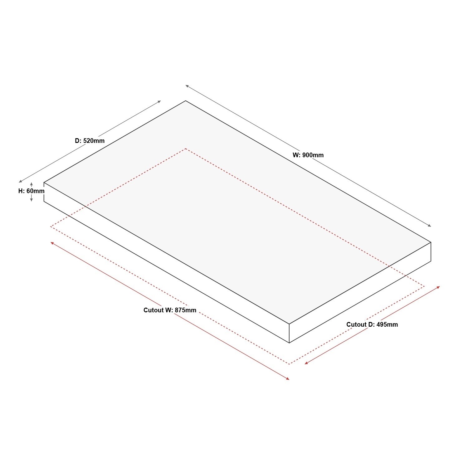 - Cut out dimensions: W 875mm x D 495mm