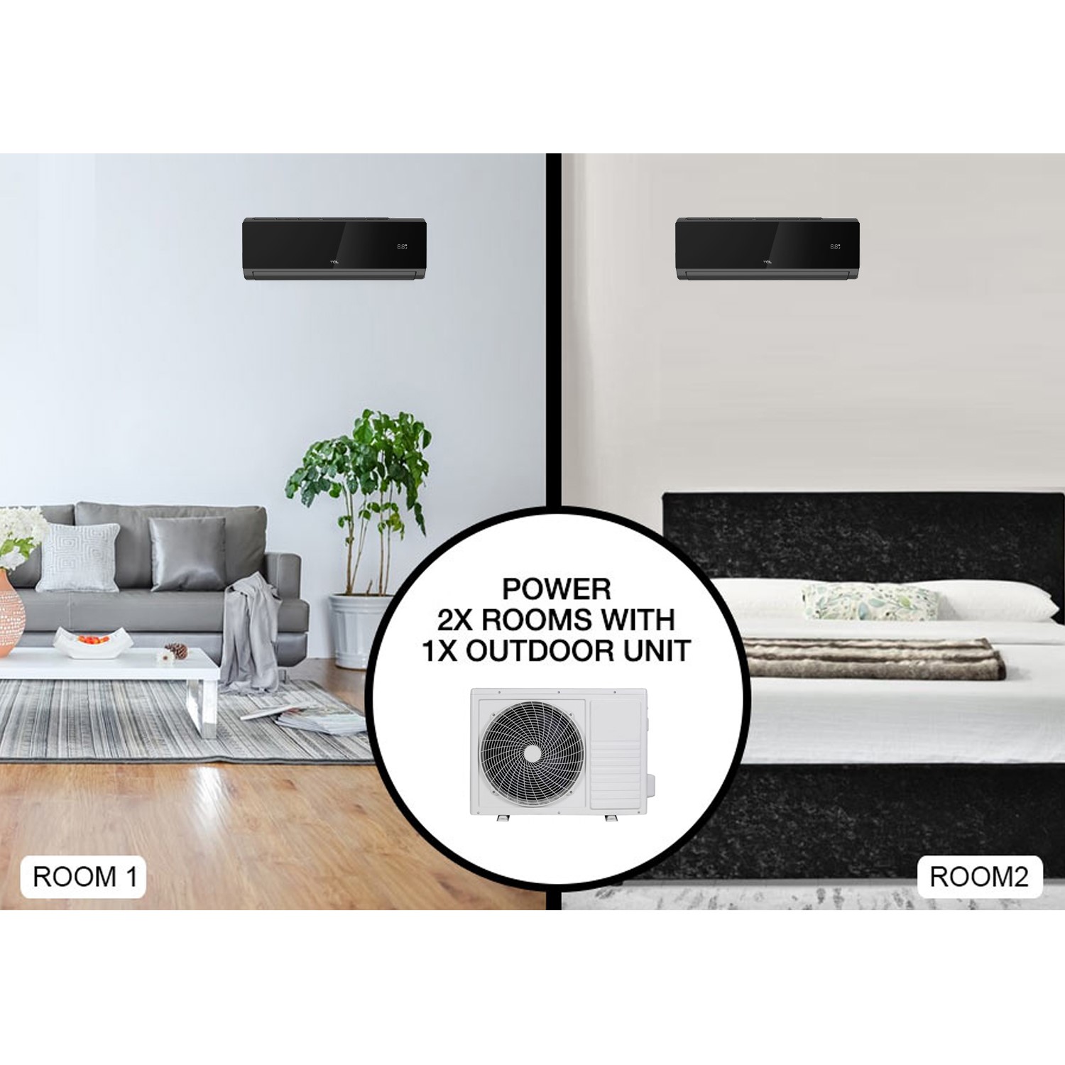 - Controls the climate of 2 large rooms from just a single outdoor unit
