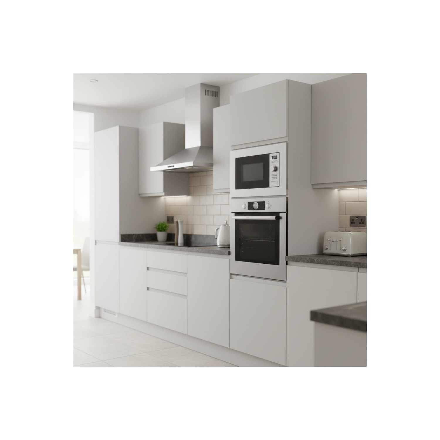 - Cupboard/unit space dimensions: H 388 x W 600 x D 300 (+ 20mm faceplate)