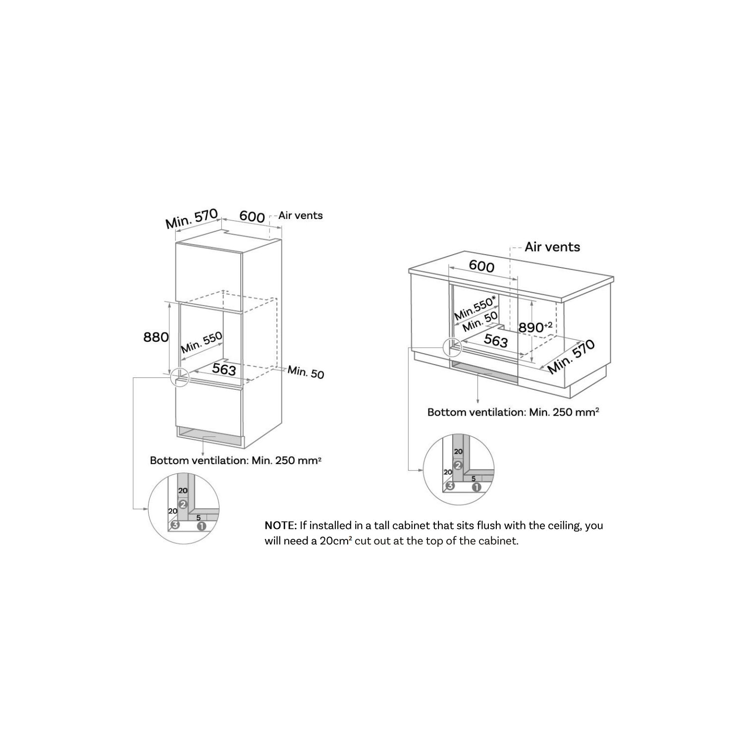 - Niche dimensions: H 870 x W 563 x D 550 mm
