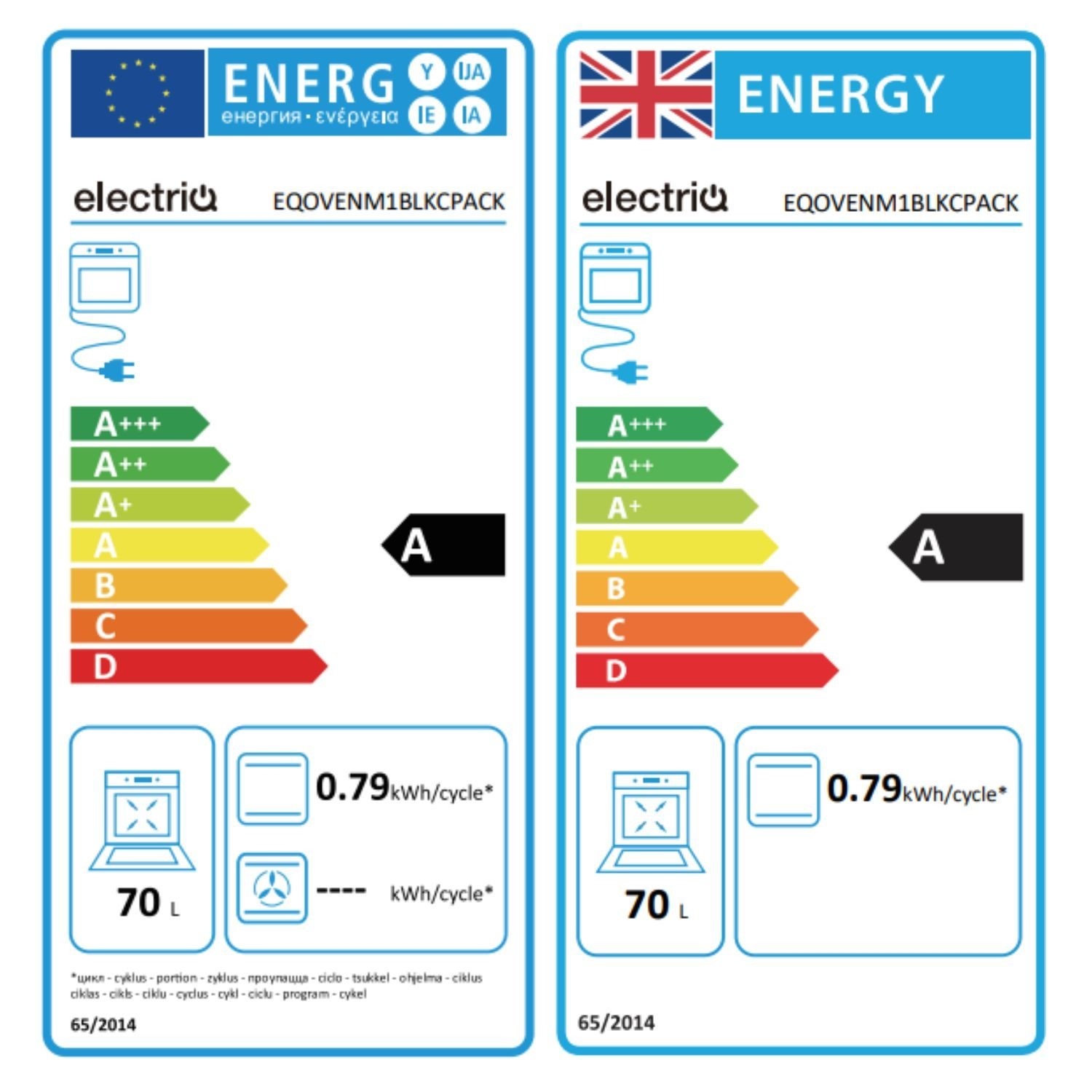 - Main oven capacity: 65L