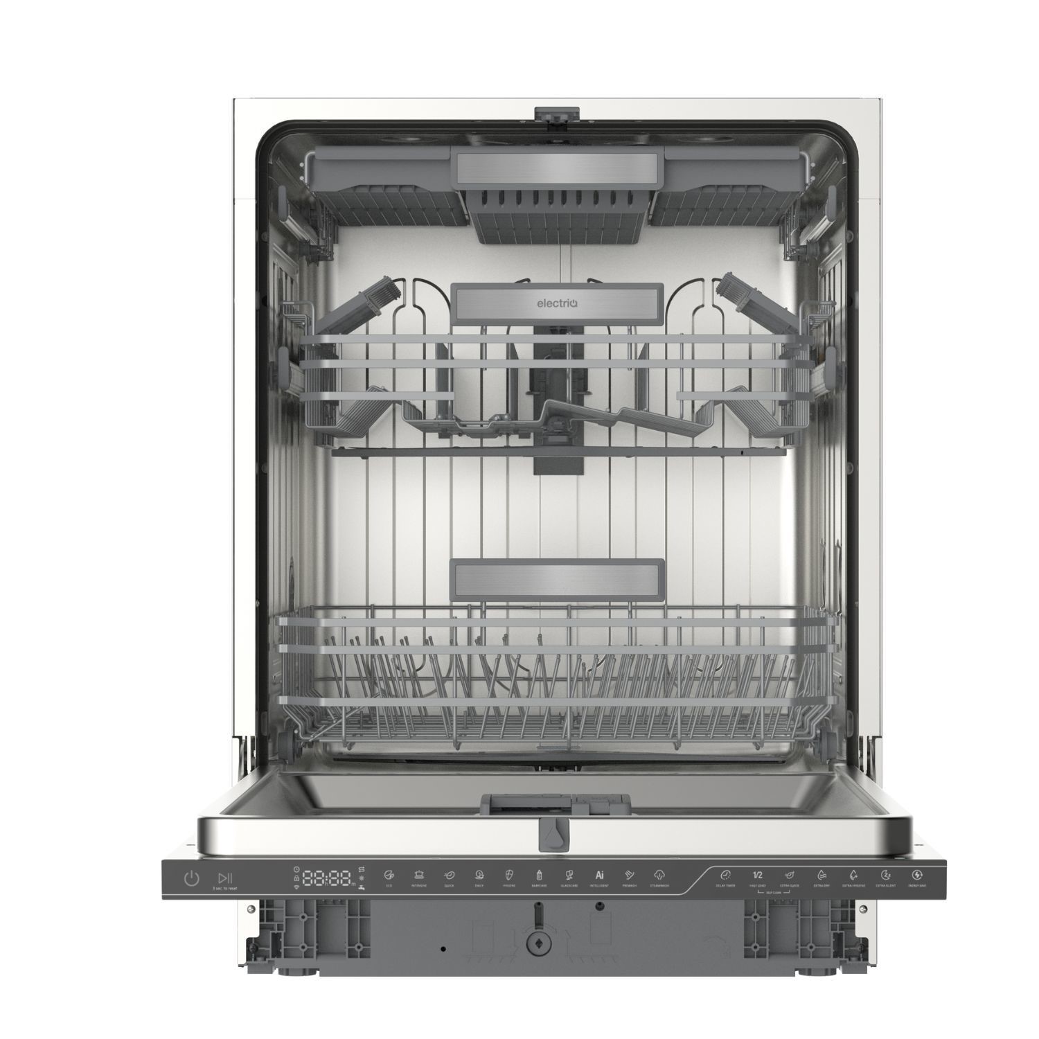 Make washing up simple with the electriQ Series 2 fully integrated dishwasher. Its extra-large 16 place setting capacity means you can fit more dishes, pots, and pans in one go, cutting down on loads and saving you time. The handy adjustable upper basket lets you easily fit taller items, making loading simple. Plus, with useful functions like Half Load for smaller washes, Extra Quick for when you're in a hurry, and Energy Save to help with bills, this integrated dishwasher offers great flexibility for your cleaning needs.