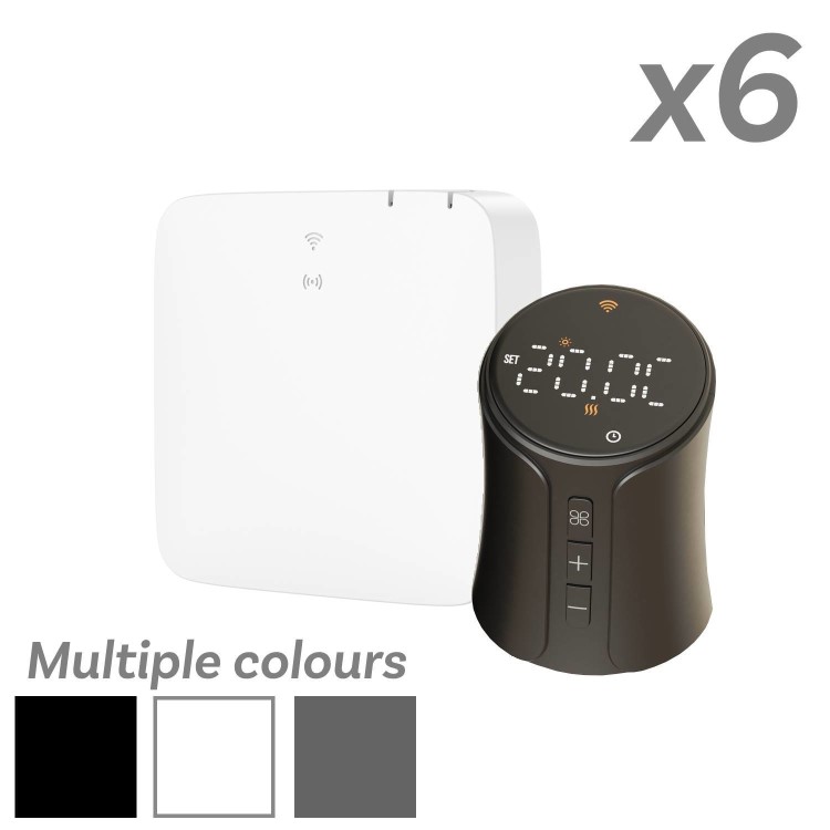 electriQ Smart TRV Valves (Pack of 6 Valves) with Zigbee Hub - 3 x Black / 3 x Anthracite