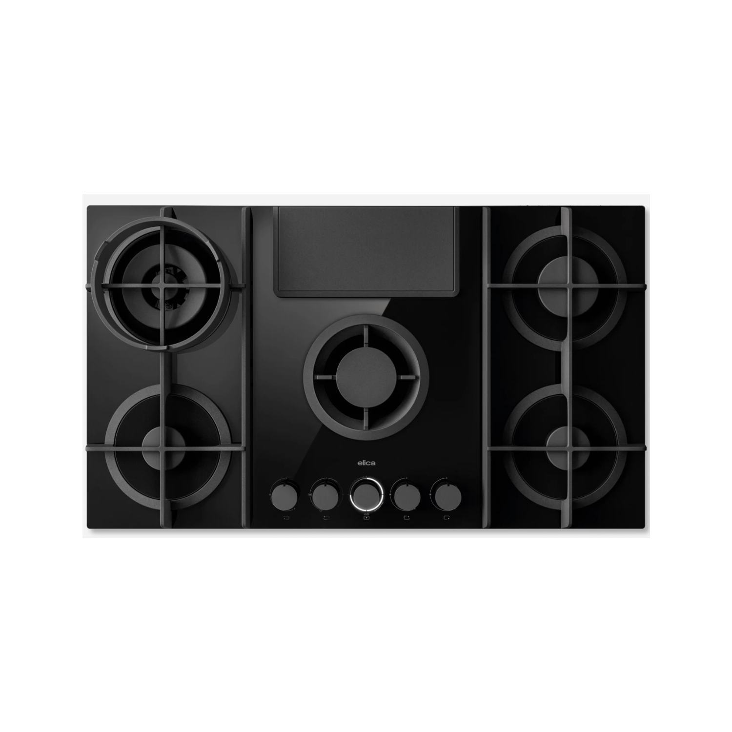 The first gas extractor hob. The magic of flames combined with powerful technology. Introducing the first-ever gas extractor hob that combines a bottom extraction system with conventional burners. In complete safety: this appliance complies with all regulations concerning flame efficiency and power, while still delivering exceptional performance. The cast iron elements merge aesthetics with functionality, and the cross-shaped, closed, flat burner grates provide a stable surface for pots and allow you to effortlessly move them on the hob. The cast iron filter cover doubles as a unique trivet; the optional wok support stand allows you to expand your cooking repertoire. The integrated extraction system clears the air of smoke and unpleasant odours, also automatically, thanks to the multi-purpose grease, odour and moisture filter which ensures maximum efficiency and effortless maintenance.