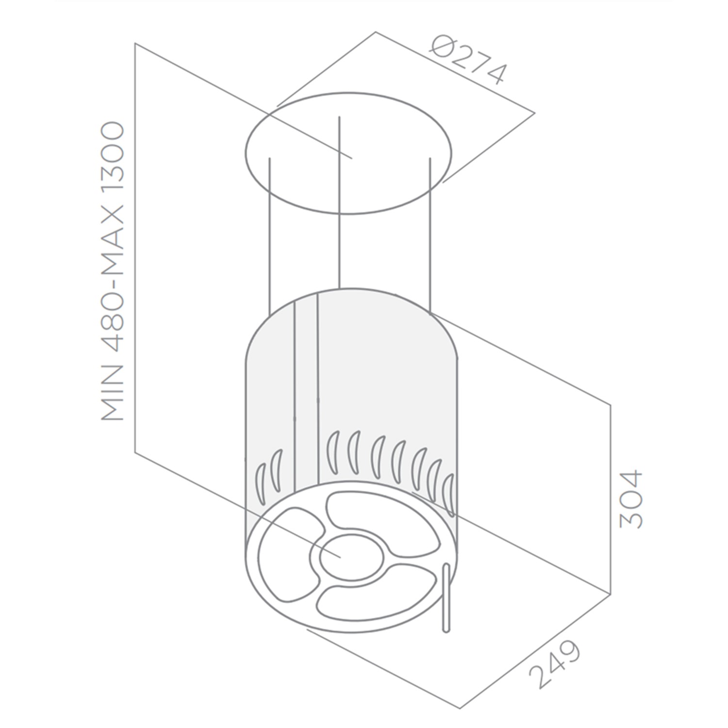 - Dimensions: H 480-1300 x Ø 274mm