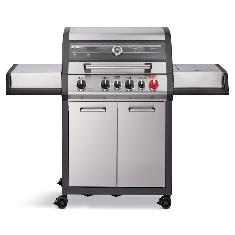 - 4 continuously adjustable stainless steel burners for powerful direct and indirect barbecuing / baking