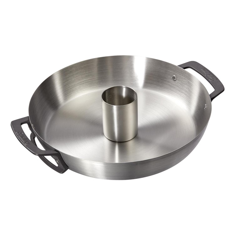 - Stainless steel body with sturdy handles made of enamelled cast iron