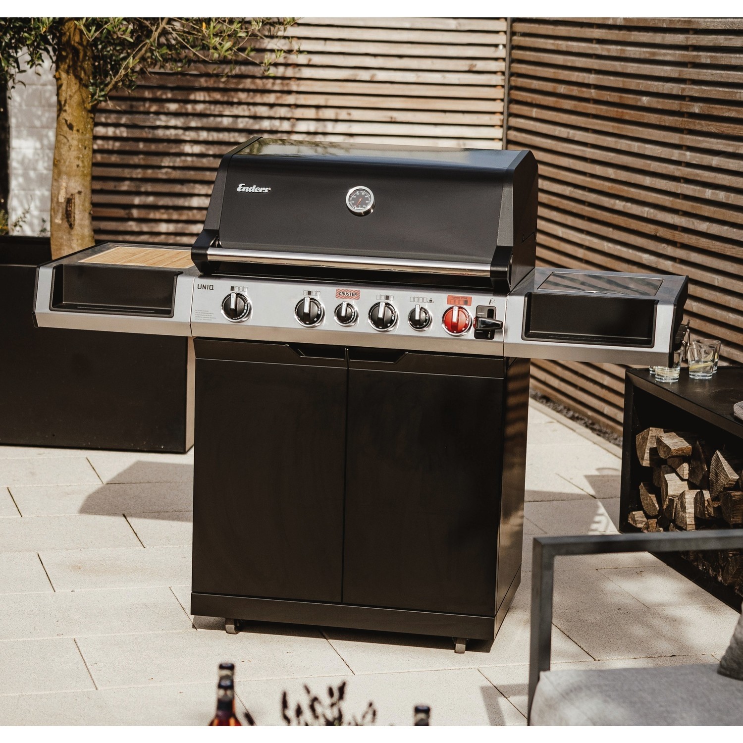 VERSATILE POWERHOUSE The UNIQ® series will make barbecue fans rejoice: two models that really show off in terms of performance and convenience and make it hard to resist! Firstly, there's the CRUSTER®, which, with its adjustable tilt position and impressive 800 °C infrared top heat, ensures fantastic steaks, crispy pizzas or even fine desserts such as crème brûlée - pretty hot, isn't it? From below, the TURBO ZONE™ with infrared mesh really turns up the heat by reaching extreme temperatures in record time. Perfect for searing and irresistible grill stripes! The enamelled SWITCH GRID™ cast iron grid gives you all the grilling options you could wish for, and thanks to SIMPLE CLEAN™, cleaning is also a relaxed affair. To keep everything hygienic, a GN 1/2 container is waiting in the side table to keep your food fresh until it's ready to go on the grill. And on top? A durable bamboo cutting board as a hygienic preparation surface, directly on the grill - for real convenience and the feeling of a grill master in his perfect composition.