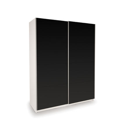 This modern sliding door wardrobe is finished in crisp Alpine White. The 2 large High Gloss Black High Gloss Doors enhance any room.