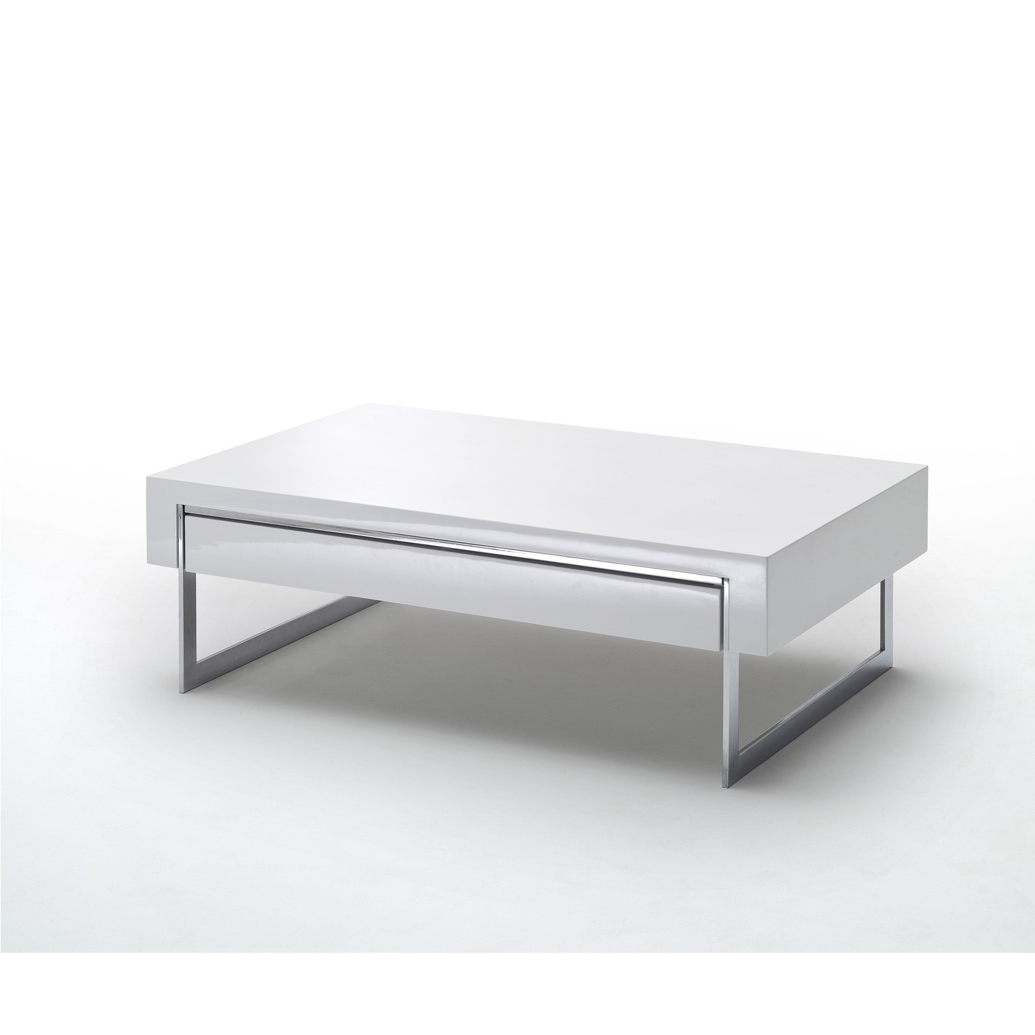 This Evoque coffee table has a flawless look that will look right at home in any modern interior. It's a stylish fusion of refreshing white high gloss with a modern metallic touch. The clean linear design supported by crisp chrome legs will help maintain the look of light and space within your room and the desirable glossy finish has its own natural shine that reflects light beautifully. It's the perfect combination of functionality and style featuring a discreet full width drawer under the table top to neatly tuck away clutter, so you can easily maintain a clean and pristine minimalist look.