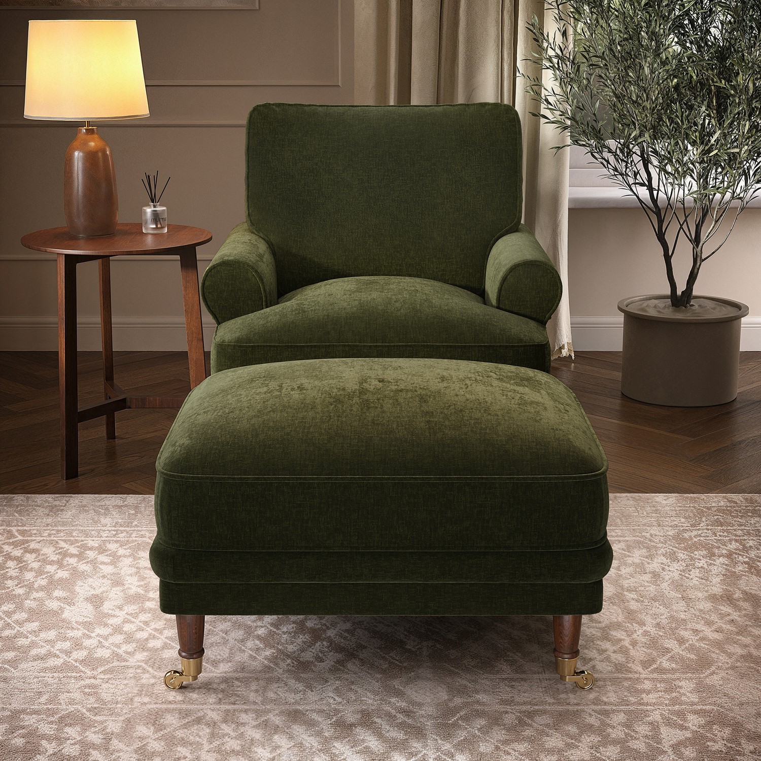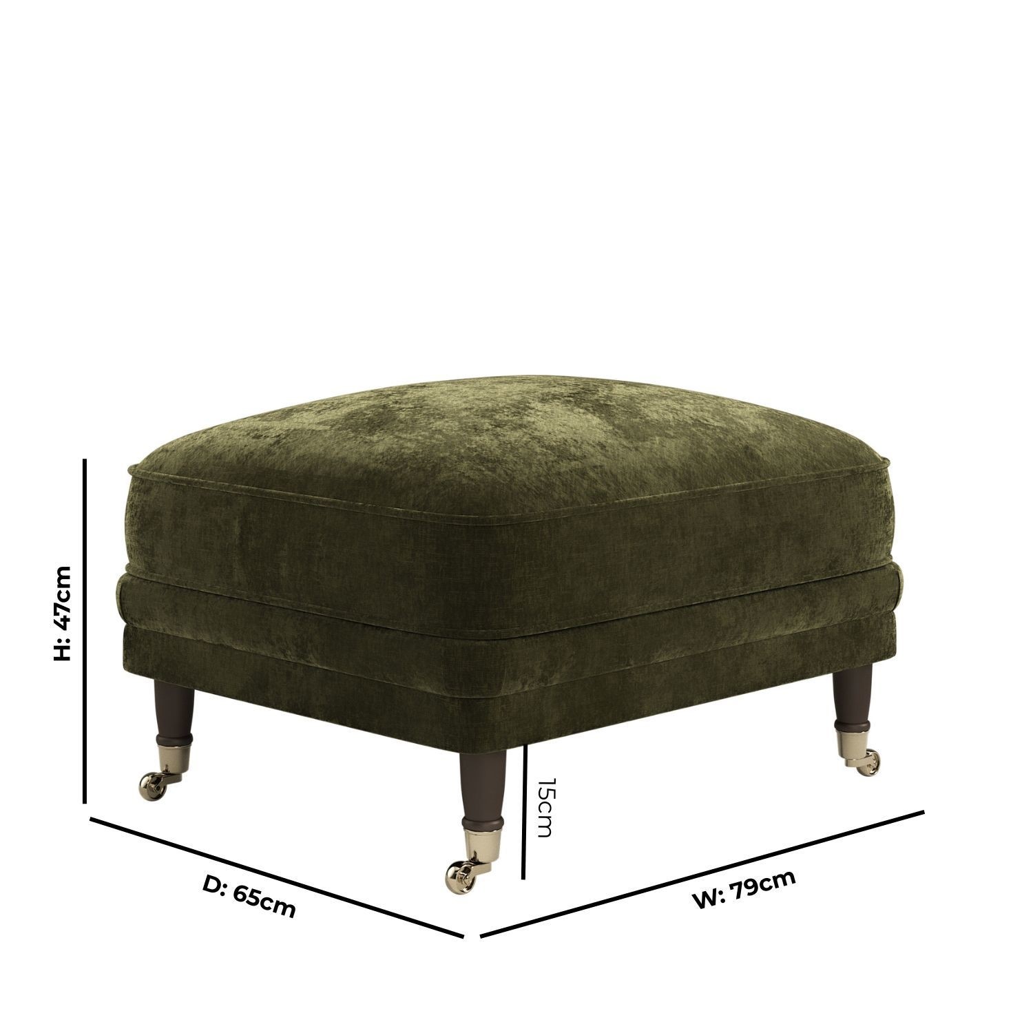 Experience refined comfort with the Payton Heritage Footstool, a timeless update of our beloved classic. Perfectly designed to complement the Payton Heritage sofa or armchair, it creates a cohesive and sophisticated look in any room. Generously padded with premium feather filling, it offers a soft, inviting feel, ideal for stretching out and relaxing after a long day. Wrapped in rich forest green chenille with a textured finish, it adds warmth, depth, and understated elegance to your home. Versatile and multi-functional, it can be used as a footstool, extra seating, or a small coffee table. Thoughtful details like removable castors and a fully finished 360-degree design ensure both practicality and style.