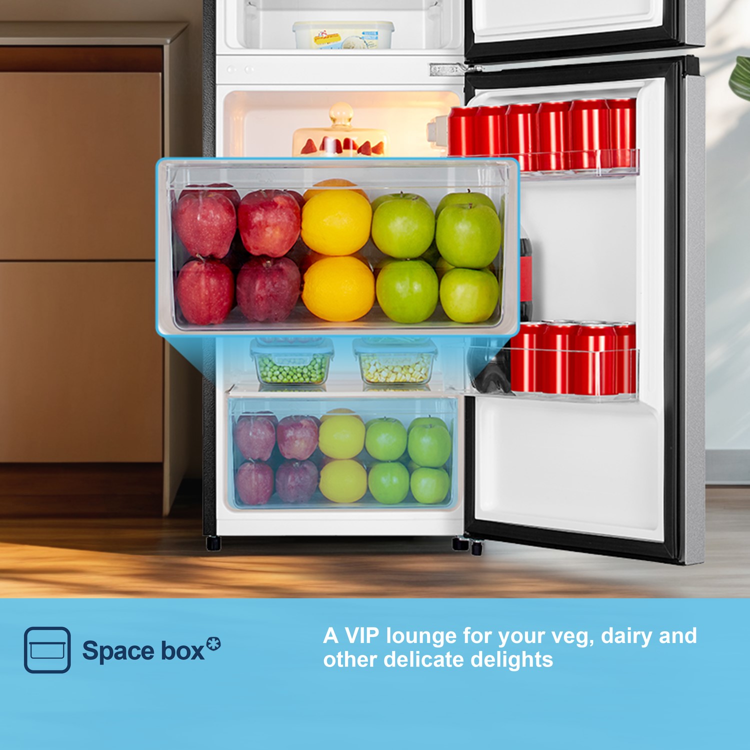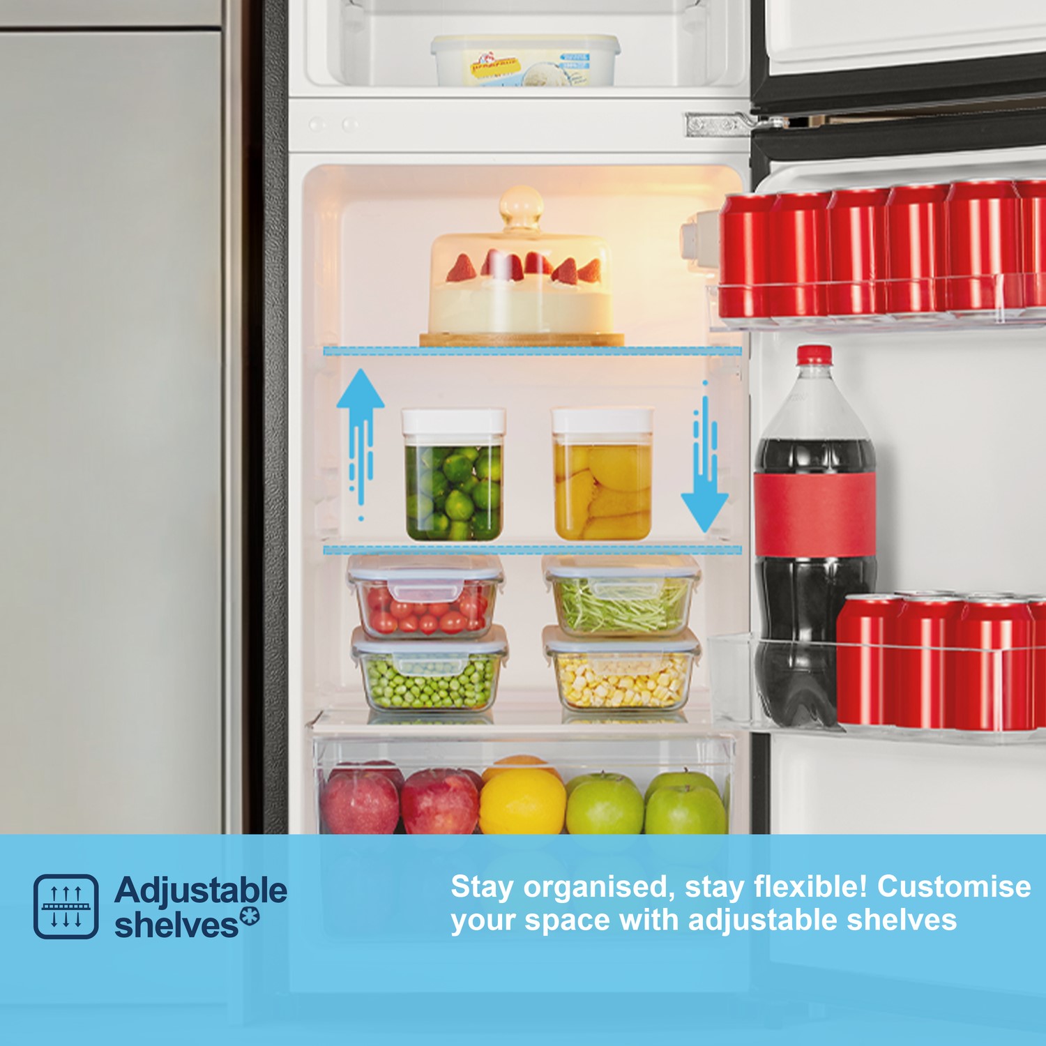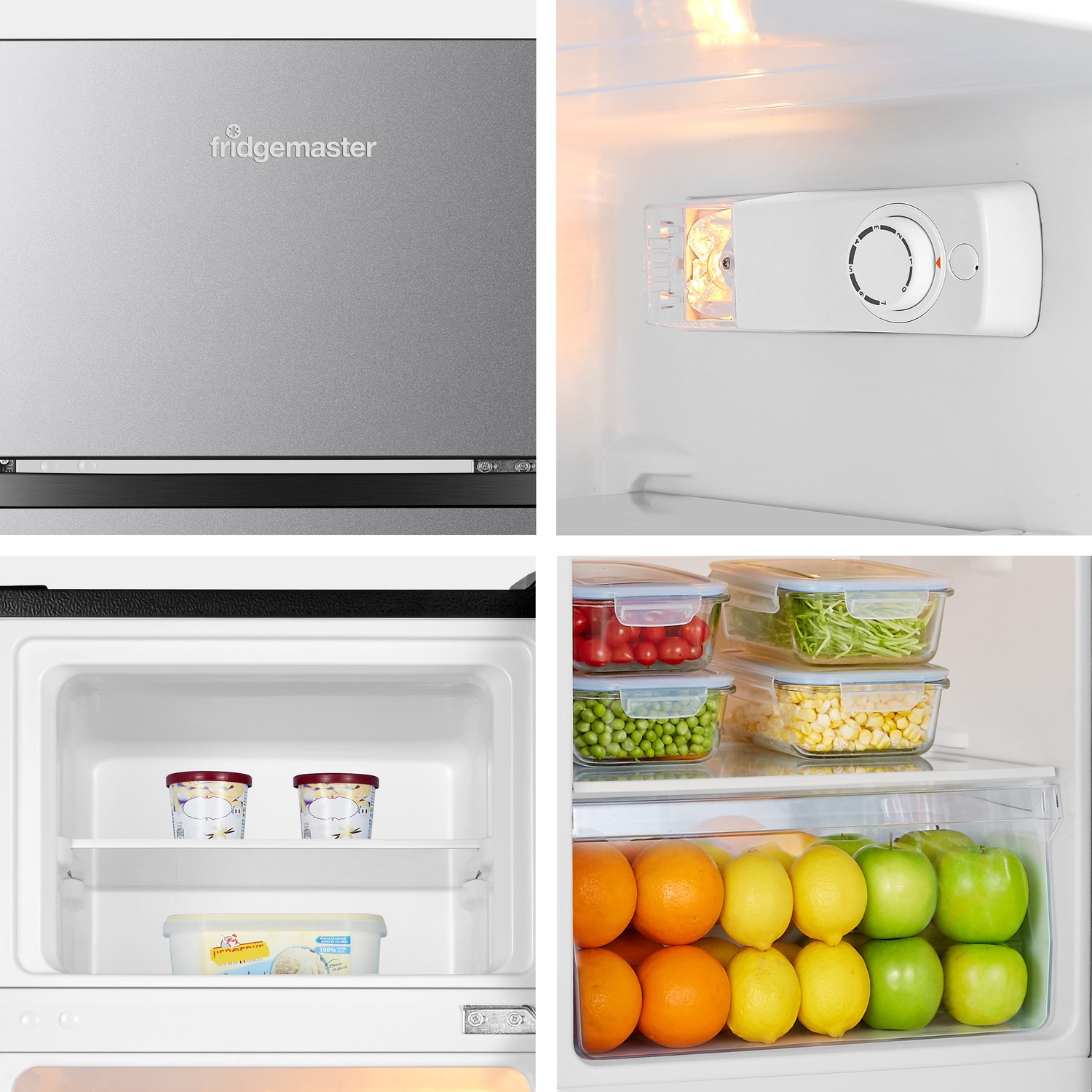 This Fridgemaster fridge freezer keeps your groceries crunchier for longer. It’ll hold up to 7 bags of fresh and frozen food, giving you plenty of space to stock up on your favourites. If you’re tired of rooting around for the fresh strawberries, the salad crisper drawer will be a life saver. It’s the perfect place to store all your fruit and veg as you can keep everything in one place – just grab and go. And because it has LED lighting inside, you’ll easily find what you’re looking for when you help yourself to a midnight snack. This model will need defrosting by hand every now and then to keep everything in tip-top shape.