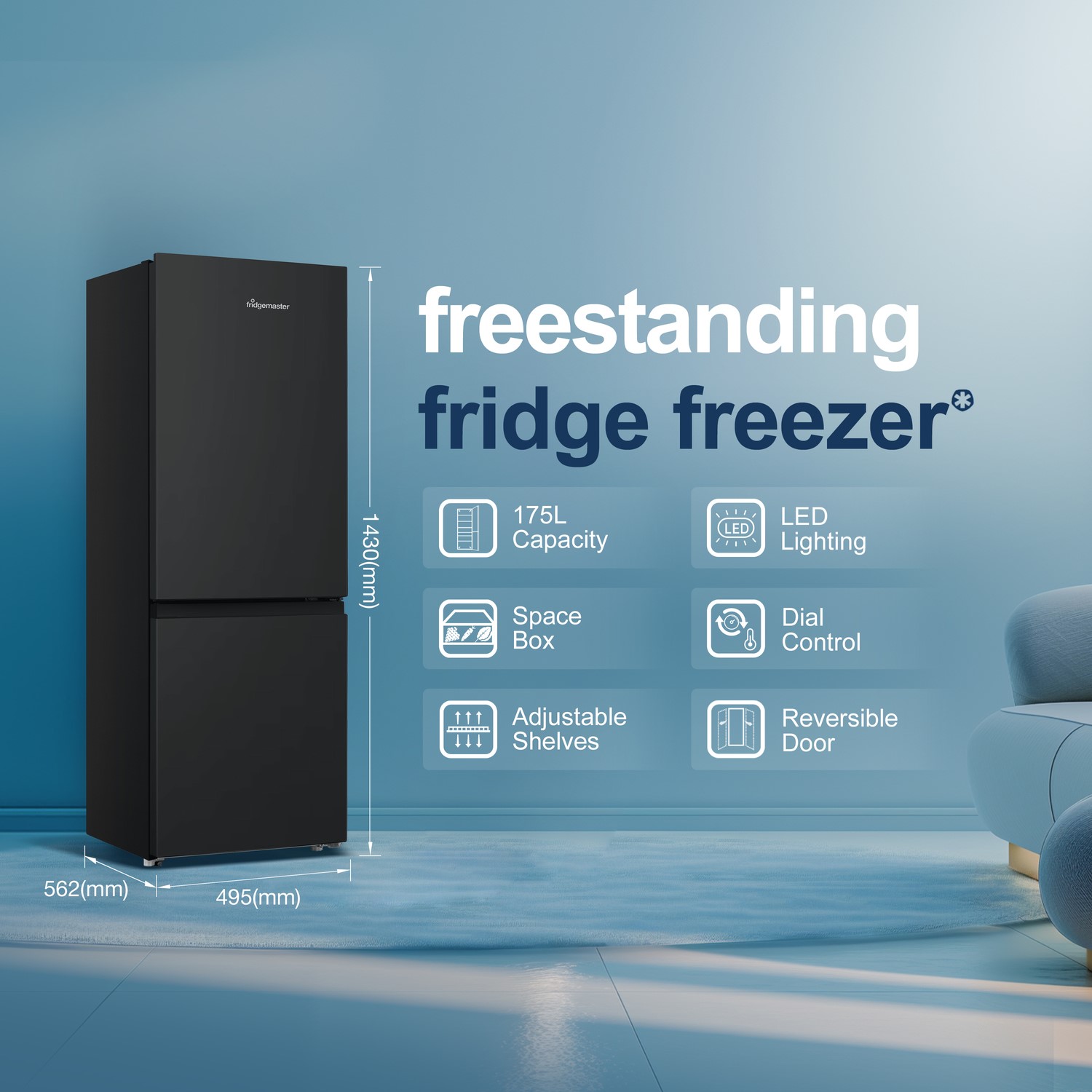 The Fridgemaster MC50165EB 50/50 Freestanding Fridge Freezer is the perfect blend of style and functionality for modern kitchens. With a total capacity of 175 litres, it offers ample space for both chilled and frozen goods—ideal for medium-sized households. Its sleek black finish adds a touch of elegance, while practical features ensure everyday convenience. Designed to fit seamlessly into your space, it’s a smart and reliable choice for any home.