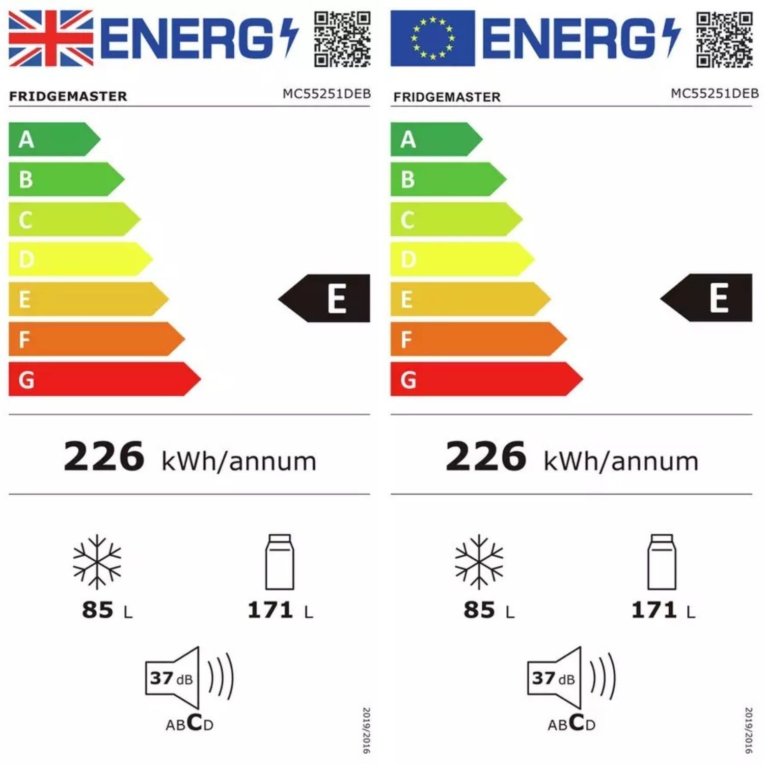This fridge freezer from Fridgemaster is the perfect home for your weekly shop. Its 256 litre capacity can hold up to 13 bags of food shopping – everything from your bottles of milk for those morning brews, to your frozen pizzas for Saturday movie night. There’s even a non-plumbed water dispenser so a refreshingly chilled beverage is only a moment away. Because this is a Total No Frost model, you won’t ever need to waste your time chipping away at pesky ice crystals either, as cold air is circulated to keep them at bay. And with doors that can be switched to open either from the left or right, finding the ideal spot for you new appliance is straightforward too.