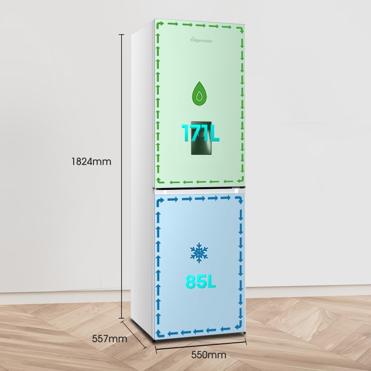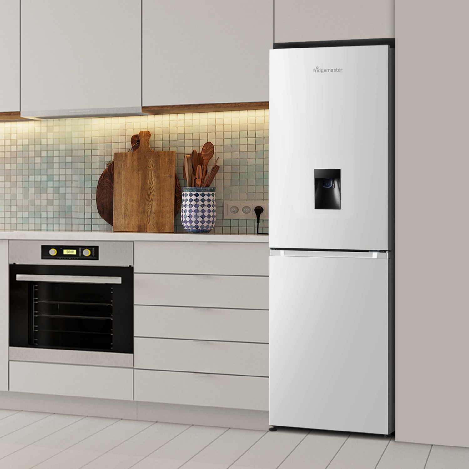 This fridge freezer from Fridgemaster is the perfect home for your weekly shop. Its 256 litre capacity can hold up to 13 bags of food shopping – everything from your bottles of milk for those morning brews, to your frozen pizzas for Saturday movie night. There’s even a non-plumbed water dispenser so a refreshingly chilled beverage is only a moment away. Because this is a Total No Frost model, you won’t ever need to waste your time chipping away at pesky ice crystals either, as cold air is circulated to keep them at bay. And with doors that can be switched to open either from the left or right, finding the ideal spot for you new appliance is straightforward too.