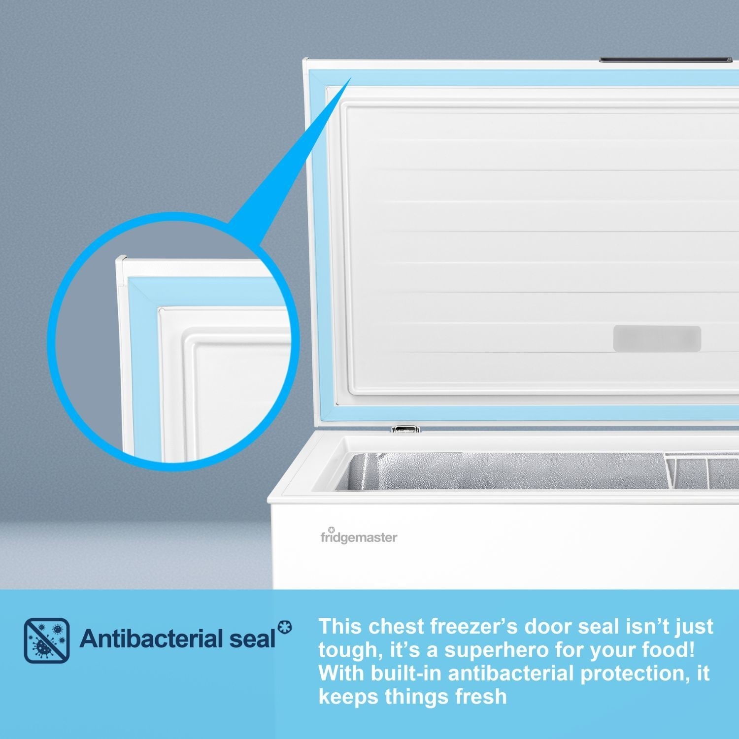 This chest freezer’s door seal isn’t just tough, it’s a superhero for your food! With built-in antibacterial protection, it keeps things fresh, safe, and squeaky-clean. Your food stays happy, and so do you!