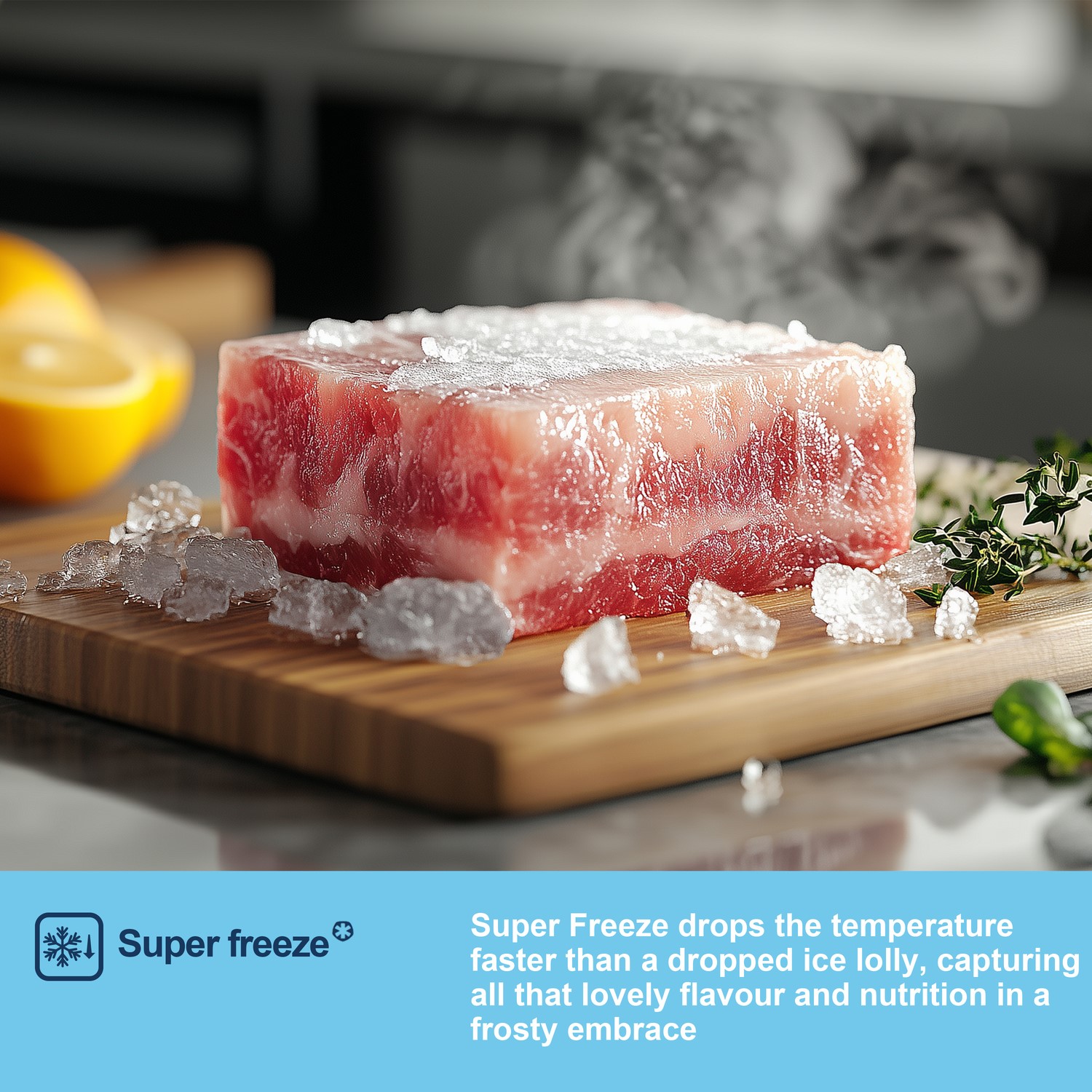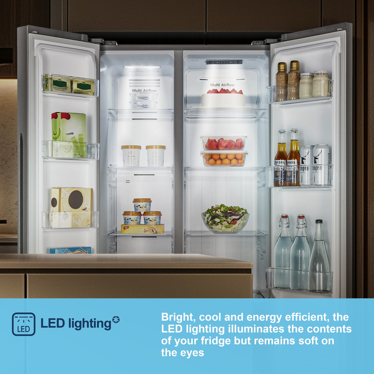 Need an American fridge freezer that’ll just do the job really well? Look no further than this Fridgemaster model. Its Multi Air Flow tech makes sure your chilled food stays fresher for longer by circulating cool air around the cabinet. That means no pesky warm spots ruining your greens. And if your frozen goodies are about to start thawing as you get them home, Super Freeze rapidly drops the temperature so they’re back in the perfect climate in no time. But that doesn’t mean you’re going to have a problem with icy build-ups, because Total No Frost keeps the temperature even so they can’t even think about ruining your Sunday (or your frozen lasagne).