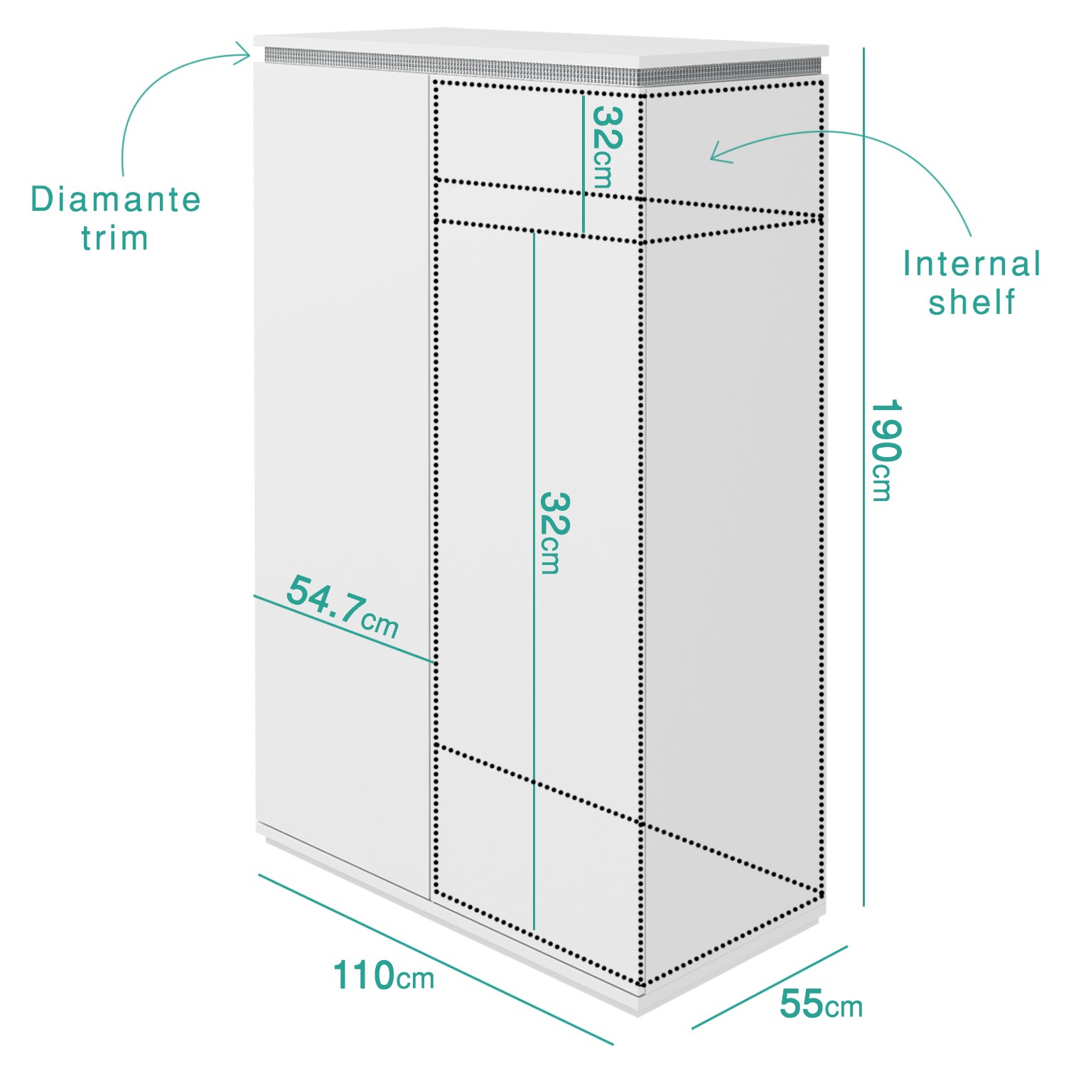 This trendy wardrobe houses a full width rail inside, giving ample storage for easy crease items and essentials. The doors maintain the flawless look as they are seamless, you simply touch to open them. Made from a combination of materials this unique bedside essential is highly durable and the smooth nature of the high gloss finish makes it super easy to wipe clean.