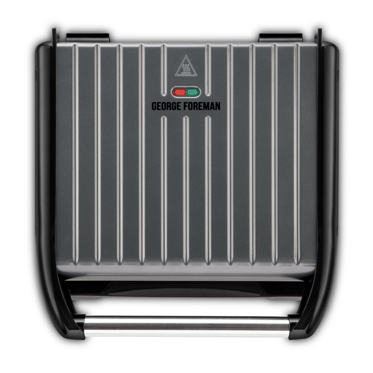 This George Foreman grill has a new contemporary design with an upper steel lid in a statement grey, making the 7-serving grill a winner in performance and appearance.