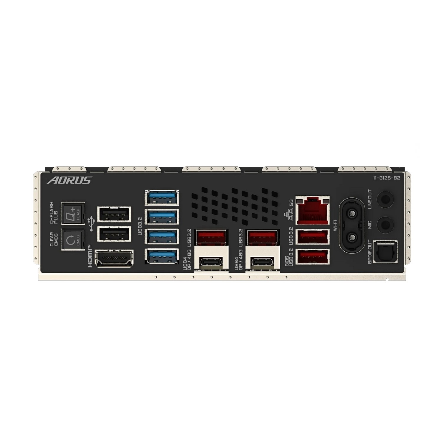 The motherboard is equipped with a wide range of ports, including HDMI, multiple USB 3.2 Gen 2 and USB4 options, and 5 Gigabit Ethernet, ensuring compatibility with various devices and high-speed Internet access.