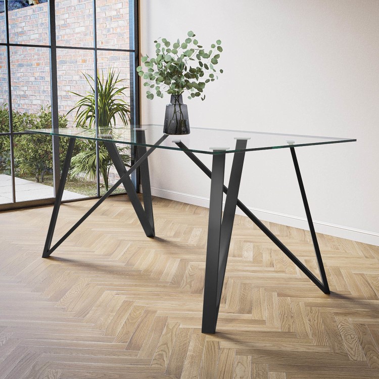 Glass Top Dining Table Black Metal Legs - Seats 6 - Dax