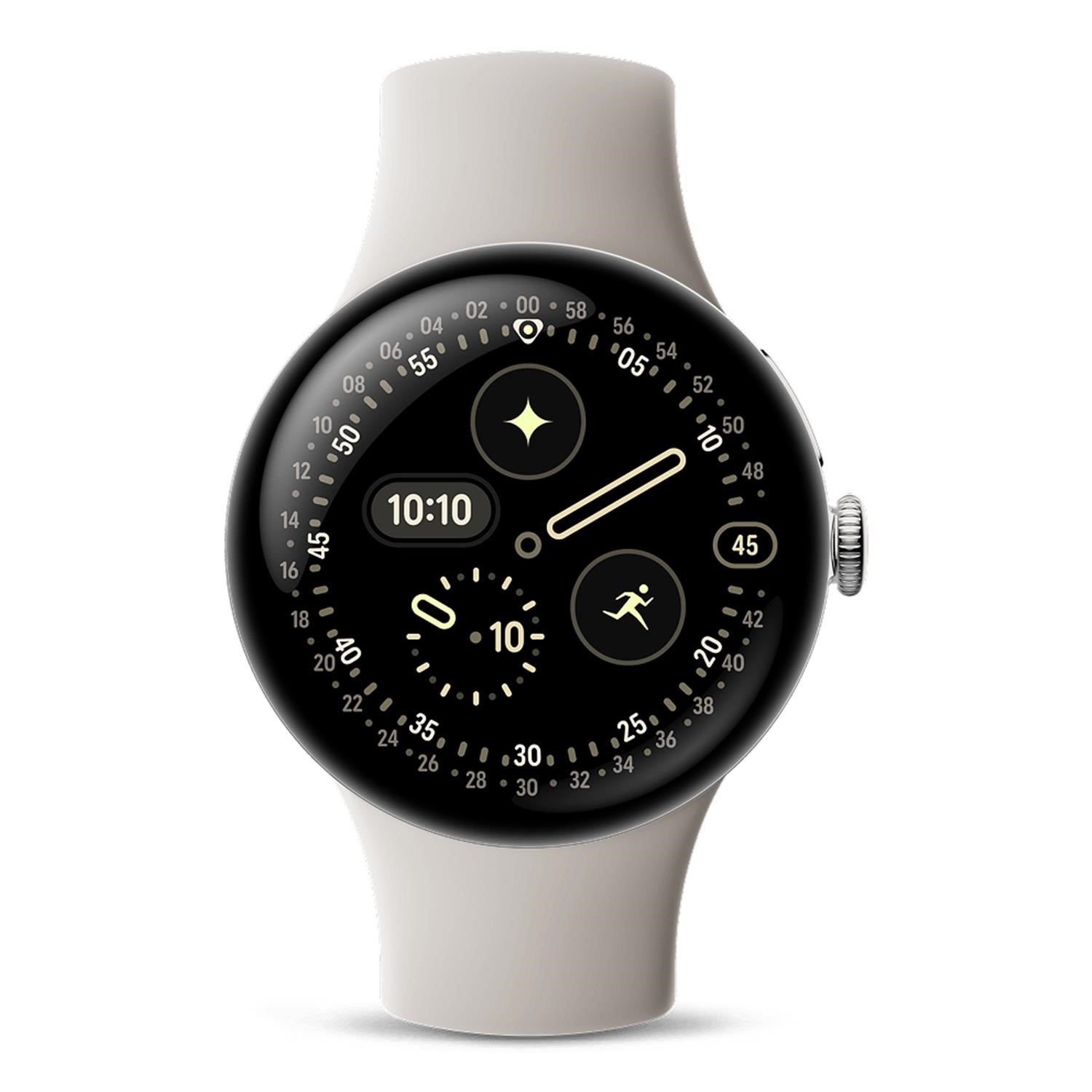 <b>A first-of-its-kind, Actua 360 display.</b><br>The durable, domed display offers edge-to-edge Corning® Gorilla® Glass with a larger active area and 3000 nits of brightness.<br><br><b>Tough around the edges.</b><br>Go down to 50m underwater, or bring on the dust, drops, and dings. It’s got aerospace–grade aluminum and an IP68 rating.<br><br><b>Longest lasting. Fastest charging.</b><br>Get 30 hours of battery on the 41mm watch or up to 40 hours on the 45mm watch. Plus, get 15 hours of charge in just 15 minutes.<br><br><b>Innovation that runs deep.</b><br>This suite of sensors sets a new bar for health and fitness tracking.<br><br><b>So, let’s maximize your performance.</b><br>With data-backed guidance to make the most of your workouts, tracking 40+ exercises is truly just the beginning.<br><br><b>The full force of Fitbit at your fingertips.</b><br>Get 6 months of advanced insights, personalized recommendations, and energizing workouts on us with a Pixel Watch 4<br><br><b>A leading approach to better health.</b><br>Fitness is just the start. From day to night, here’s the total package.<br><br><b>Look no further for peace of mind.</b><br>This watch takes your safety seriously.<br><br><b>Simply raise your wrist. Seamless.</b><br>With a custom speaker and stronger haptics, your AI assistant delivers quick responses for personalized help.<br><br><b>Smart replies just for you.</b><br>Stay connected with AI-powered text suggestions – they’re personalized with your usual style and relevant to your conversation.<br><br><b>See who’s calling and why.</b><br>Use AI to pick up and hold calls for you. And spam? Detected and denied so you don’t have to deal with it.<br><br><b>Stay connected. Stay organized. Stay uncompromising.</b><br>Your favorite apps are all here too.<br><br><b>The watch that unlocks the full powers of your Pixel phone.</b><br>You’ll be amazed what you can do from your wrist.