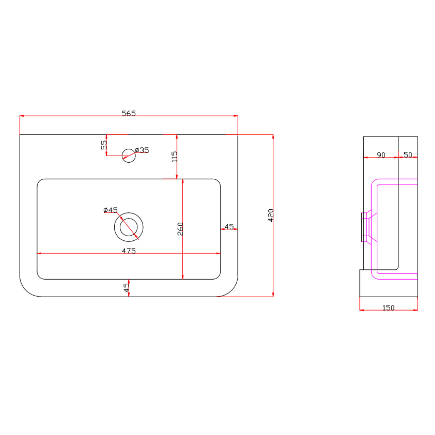 - Taps & Waste not included ( suitable for a mono basin mixer & Slotted Basin Waste )