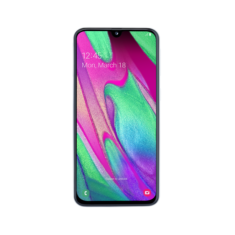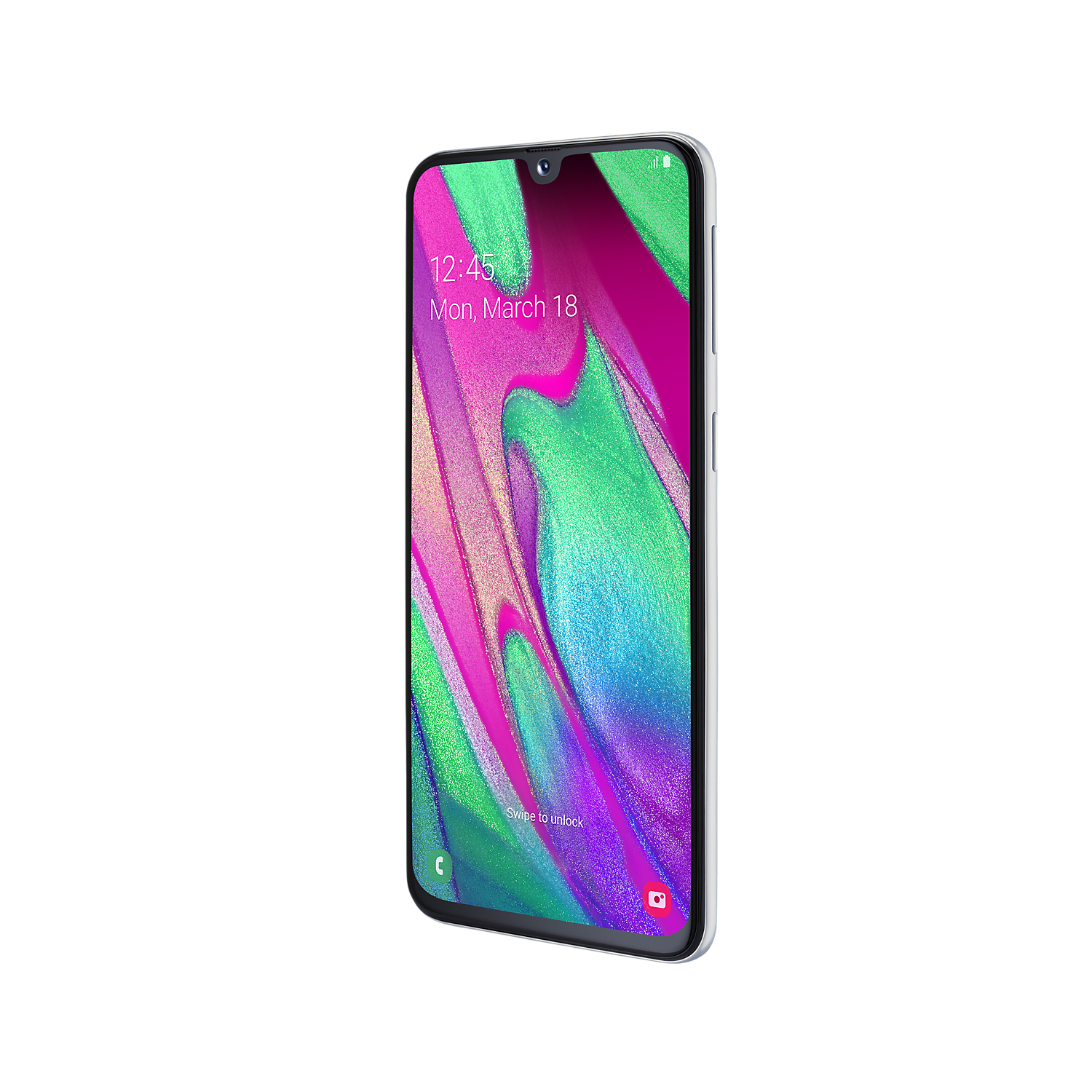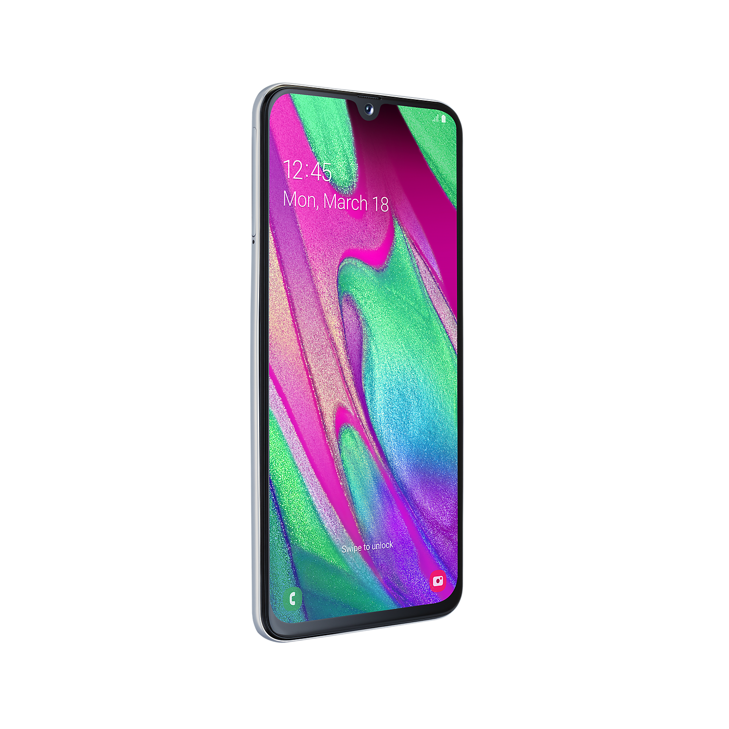 The sleek, slim and beautiful Galaxy A40 is designed to stand out. The minimalist 3D Glasstic back rests easily in a single hand, featuring stunning curves at every corner. Choose from black, white, coral or blue shades and express yourself.