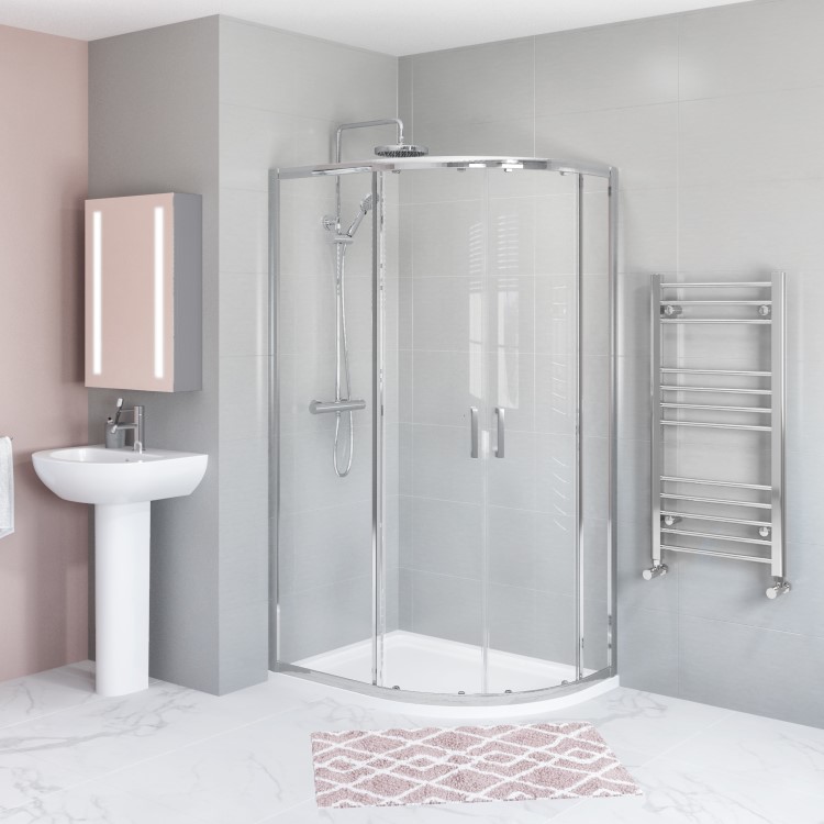 This chrome offset quadrant quadrant shower enclosure's 6mm toughened safety glass, double sliding doors, and beautiful chrome handles make a stunning addition to any bathroom, and the easy clean coated glass keeps it looking newer and cleaner for longer. It's simple to assemble and maintain, and the 1900mm height allows to hold more shower sprays.The easy access sliding shower door with chrome handles space in any bathroom and are simple to operate, making getting in and out of the shower a breeze. Offset quadrant are generally bigger; they are oblong in shape with one corner rounded off.Its snug corner fit is great for ensuites and small bathrooms, with enough of room to shower.