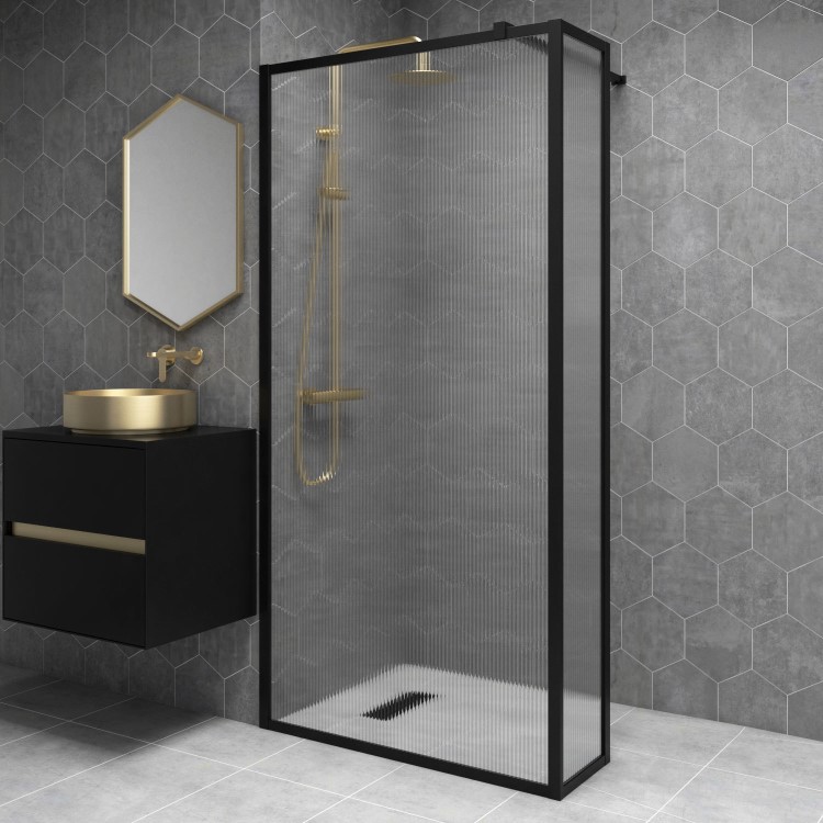 GRADE A1 - 1000mm Black Fluted Glass Wet Room Shower Screen - Volan