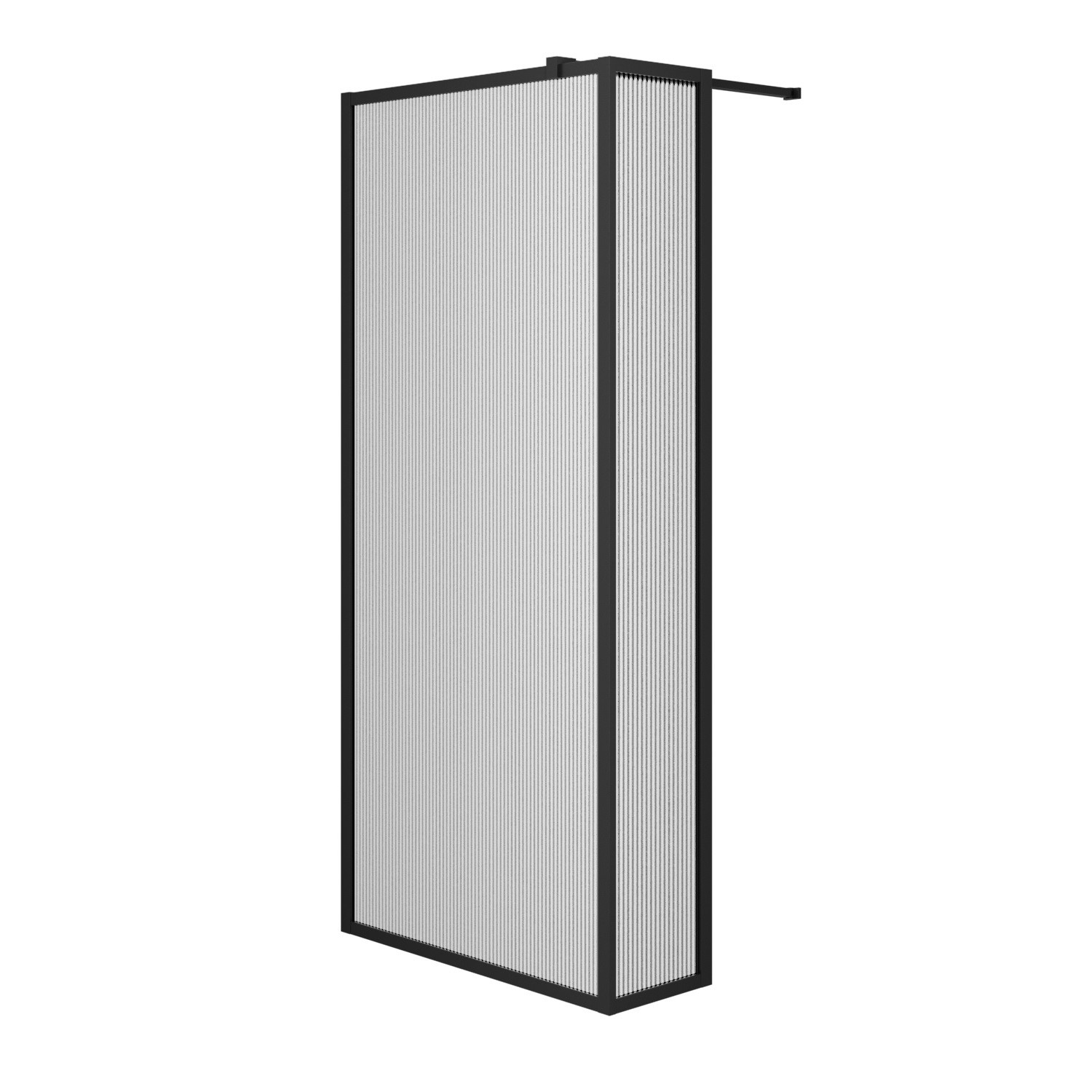 1 x GRADE A1 - Volan 300mm 8mm Framed Wetroom Return Panel - Fluted Glass & Black Frame