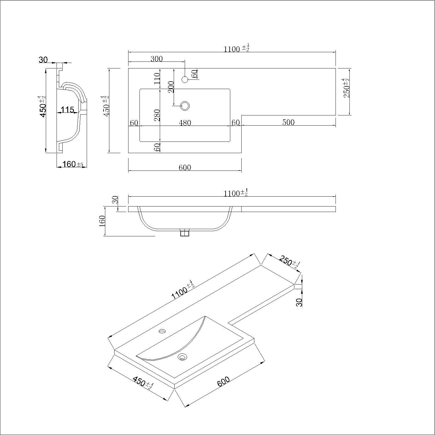 - Basin finish: White