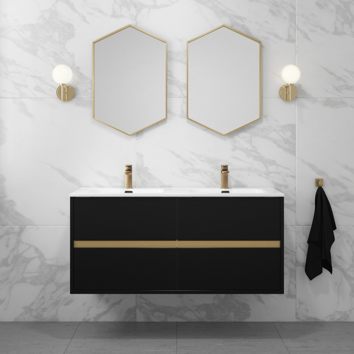 - Chic wall-hung black vanity unit with inset basin