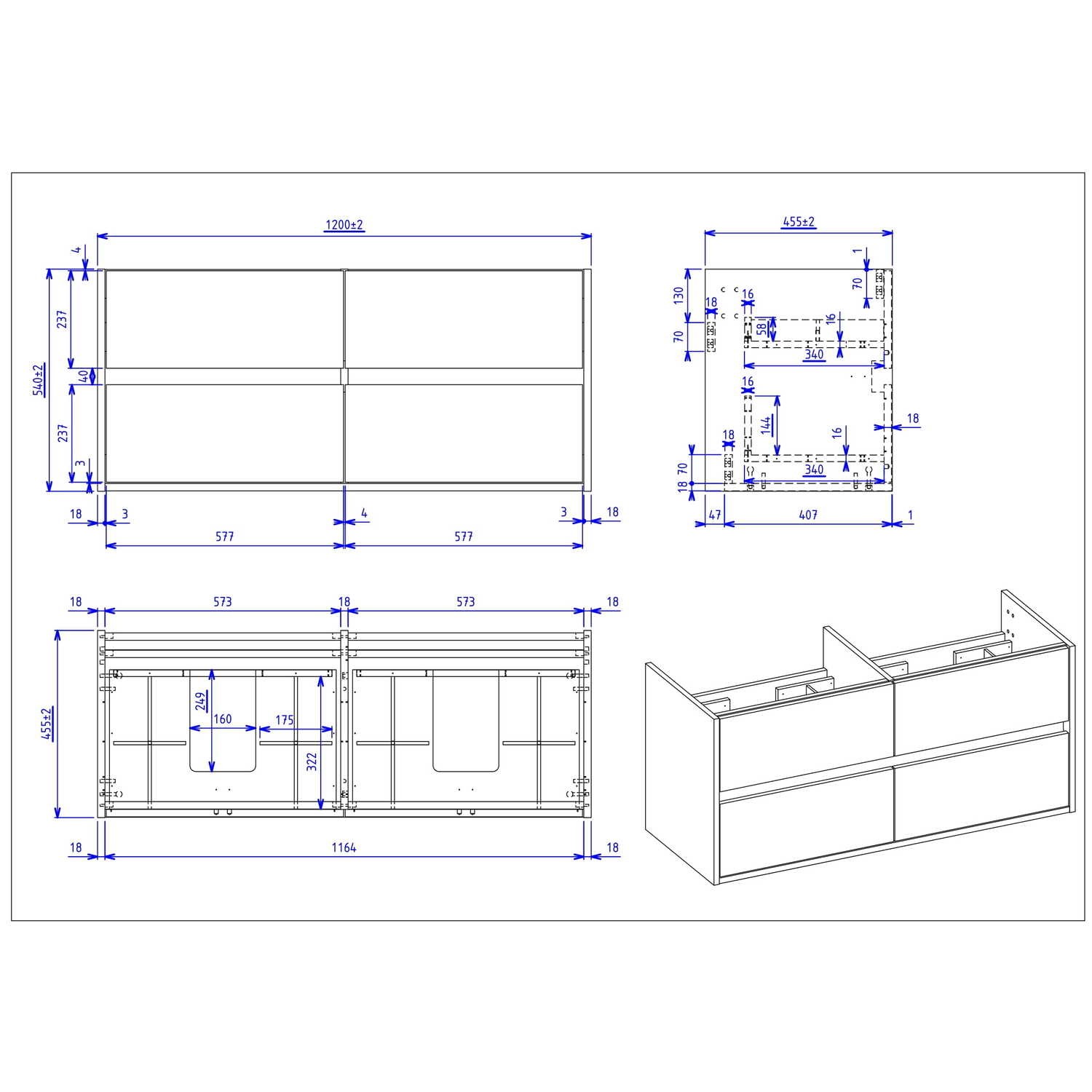 - Unit Dimensions: H540 x W1200 x D455 mm