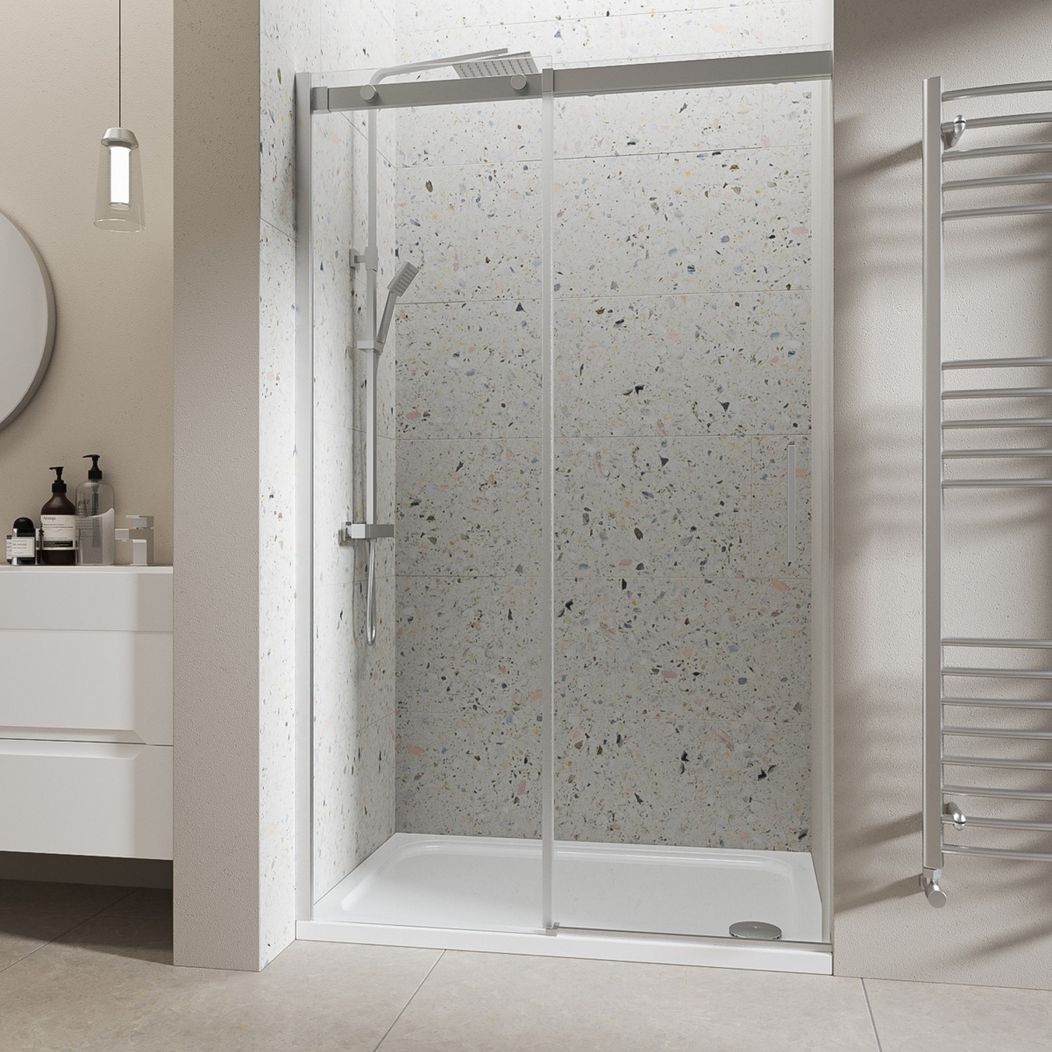 In any bathroom, sliding doors save space while creating a big showering area that makes getting in and out of the shower a breeze, taking up less space, and the height of 2000mm prevents shower spray from reaching the bathroom. Since there are no glass panels, cleaning this shower door is easier and all fittings are included for a quick and simple installation.