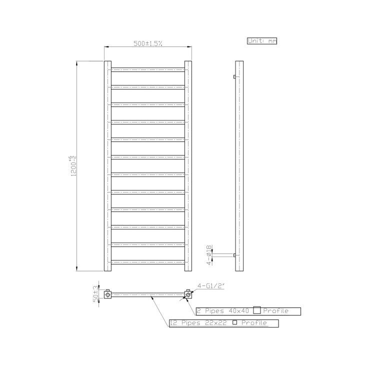 GRADE A1 - 1200x500 (12 bars) Matt Black