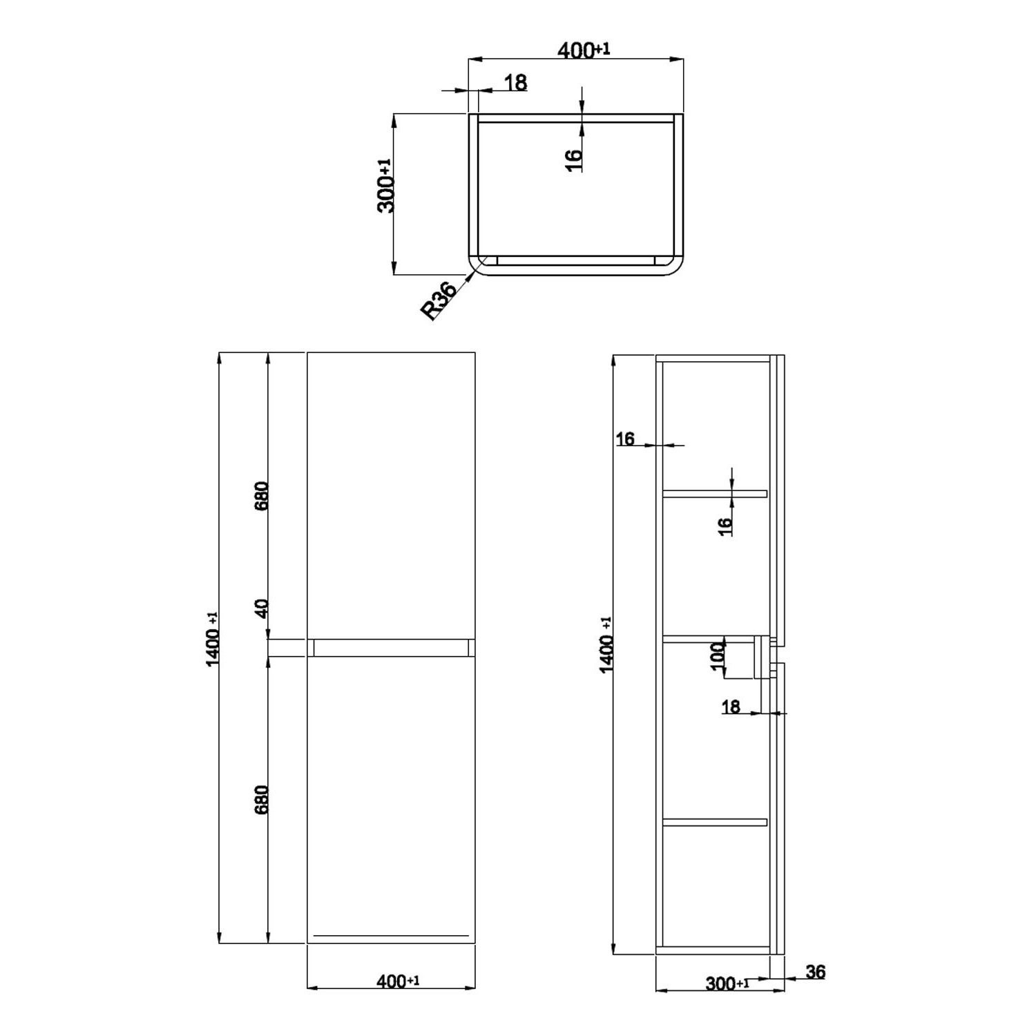 - Dimensions: H1400 x W400 x D300 mm (give or take -/+ 3mm per measurement)