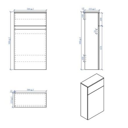 - Dimensions: H900 x W500 x D225 mm (give or take -/+ 3mm per measurement)