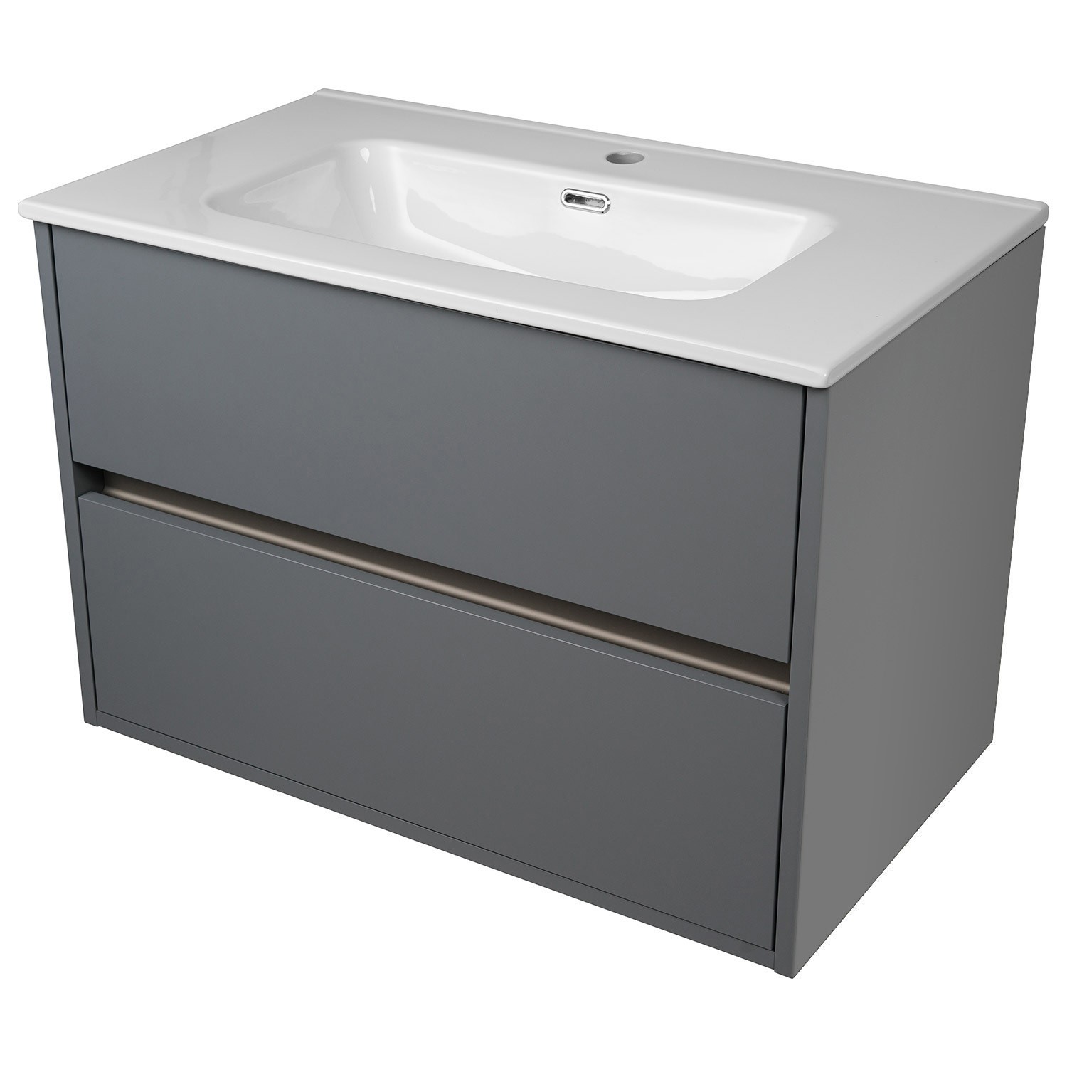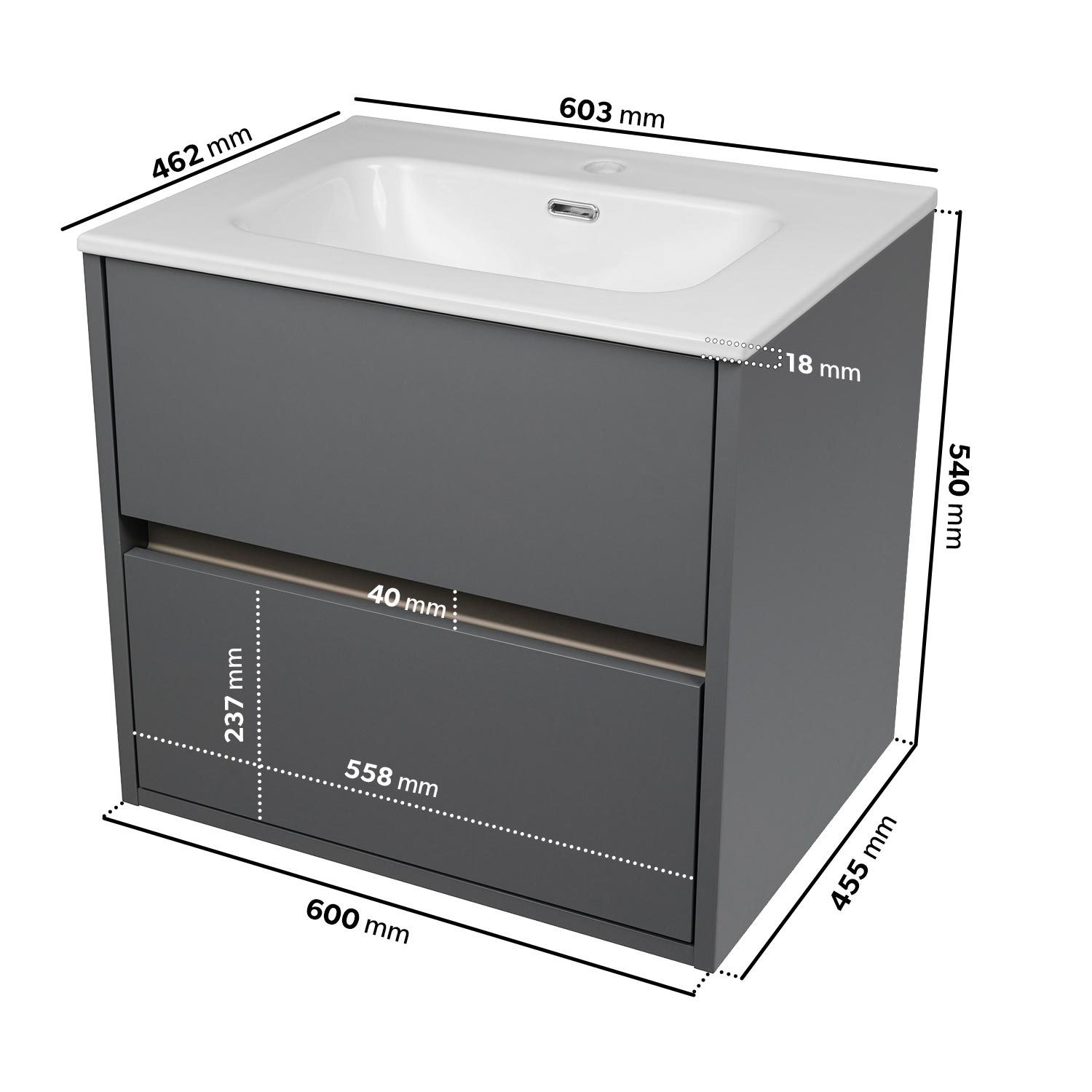 Make the most of your bathroom floor space and get the look of a high-end boutique hotel with this stylish wall hung vanity basin unit. With a minimalist handless opening and matt grey finish, it’ll add elegance to any bathroom. A high-quality ceramic inset basin is included; a tap isn’t included, so you’re free to choose the tap of your choice. No assembly is required, just secure the basin, install your chosen tap and get to using it right away. There are various colourways and widths also available in the Roxbi range.